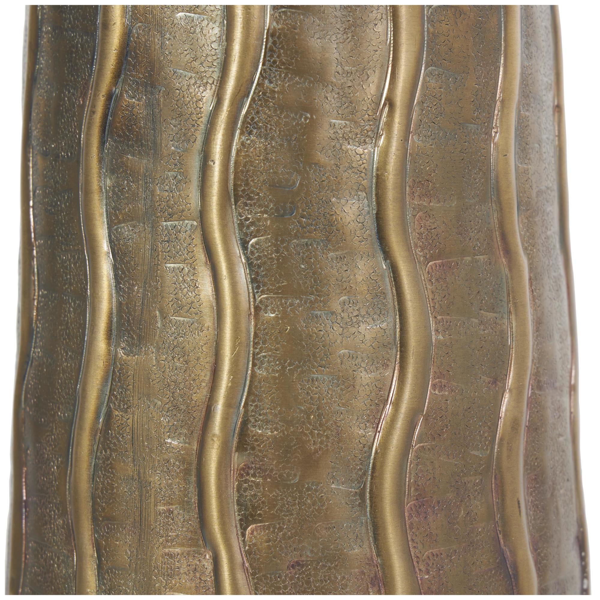 Brass Metal Snakeskin Inspired Decorative Vase with Dimensional Wavy Accents