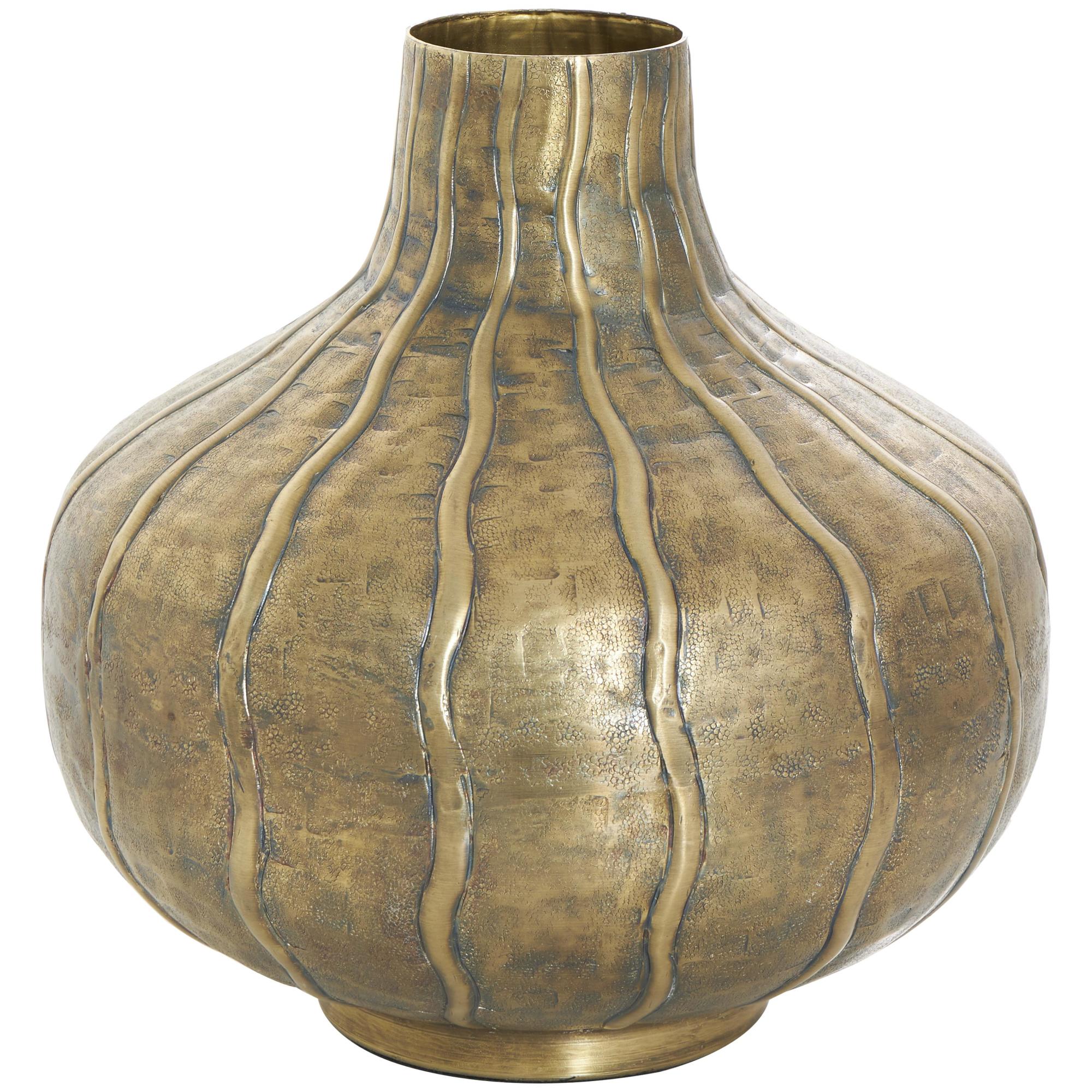 Brass Metal Wide Snakeskin Inspired Decorative Vase with Dimensional Wavy Accents