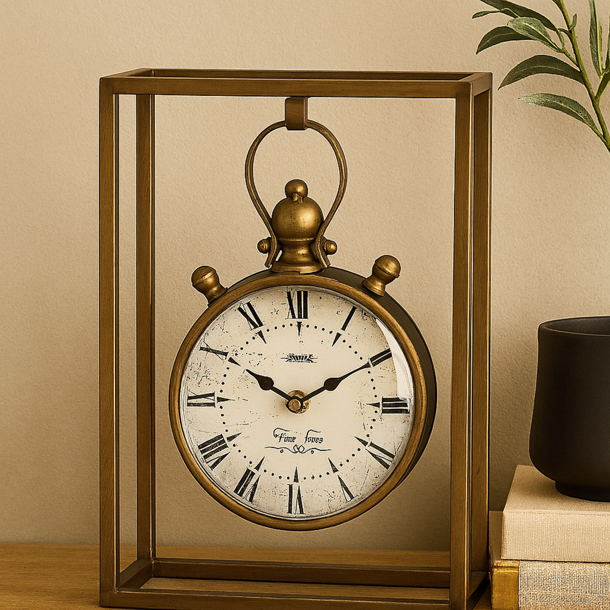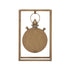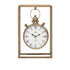 •This iron clock features a vintage timepiece suspended within a rectangular frame, offering timeless vibes