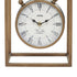•The matte clock for decor boasts a round face bearing Roman numerals and spade-shaped hands hanging within an open rectangular frame