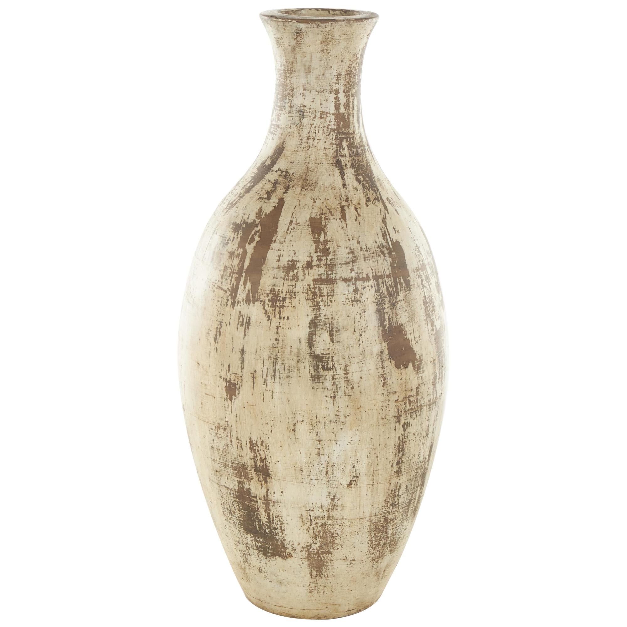 •With an antique-style distressed surface, this ceramic vase features a unique and character-rich design