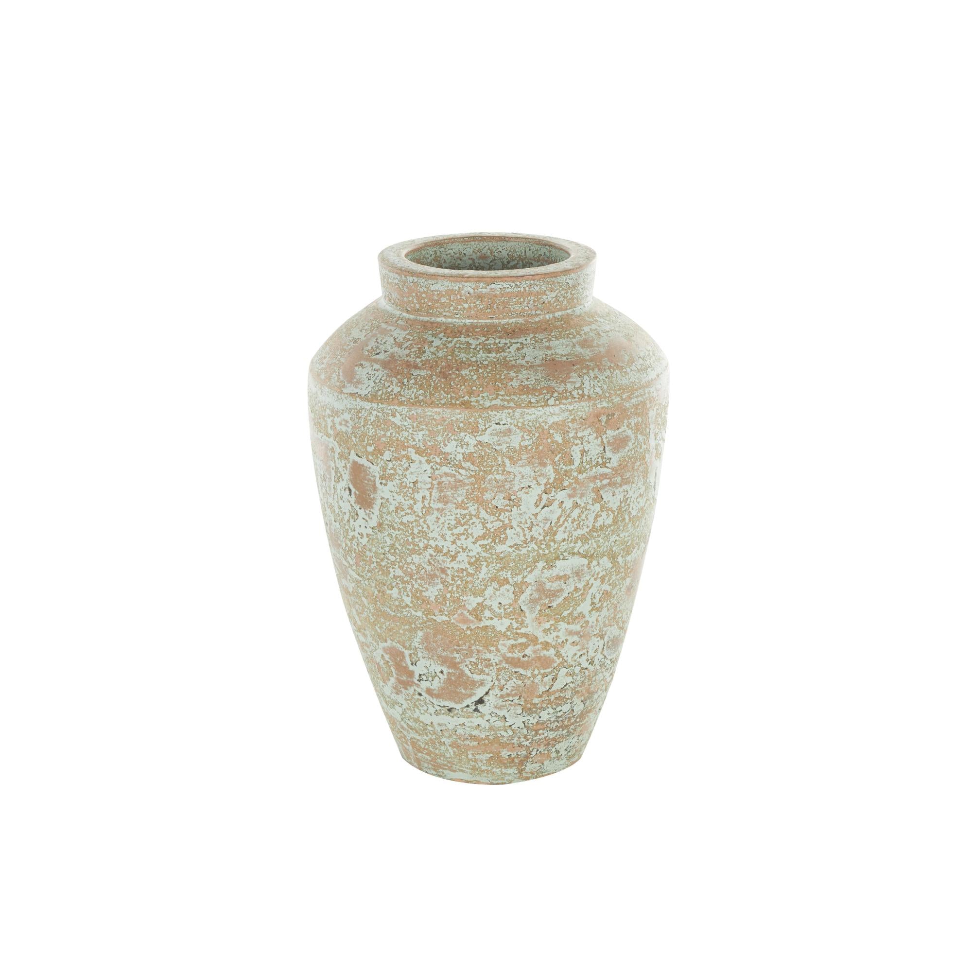 •A classic rounded shaped distressed vase for dried flowers offers a timeless and versatile design, with texturing that adds artistic dimension to your decor