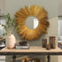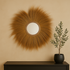 •The textured mirror for wall features a round inner frame profile with a sunburst style dried grass external decorative frame