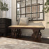 So take a load off and relax on this decorative bench. A small piece of furniture that make a big difference to give your home an instance refresh. This entryway bench will complement light-colored sofas with other natural wood decor for the perfect rustic look. This item ships in 1 carton. Full metal frame comes with functional wheels for smooth movement. Suitable for indoor use only. Some assembly required. Maximum weight limit is 400 lbs. Can accommodate 2 people. This is a single entryway bench. Industrial style.