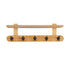 •The oiled wall-mounted hook features an elongated oval shape and rectangular posts with natural wood grain patterns, along with five scrolled hooks