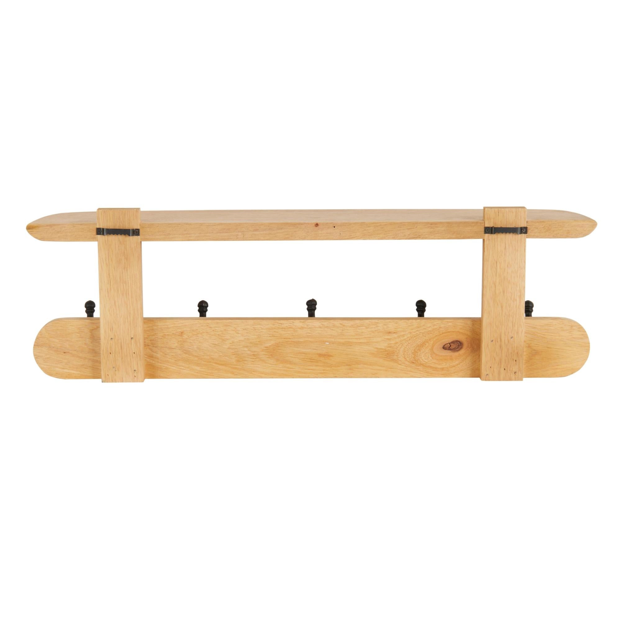 Brown Mango Wood Handmade Single Shelf Home Wall Hook with 5 Hooks