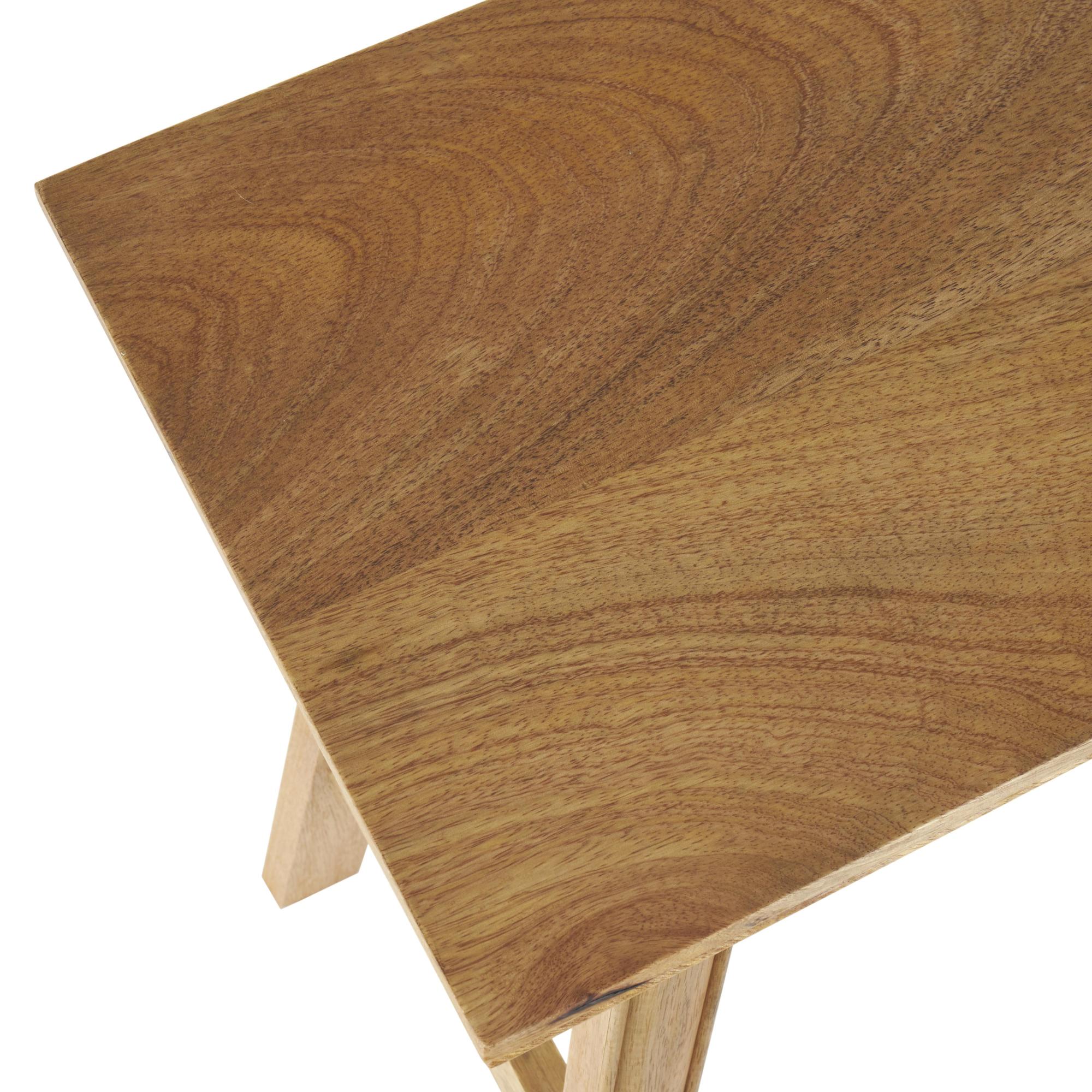 •This home bench is made entirely of mango wood, renowned for its durability and beautiful grain