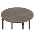 •Iron accent table features a round marble top on four slender legs structure with an X shaped base support for added stability
