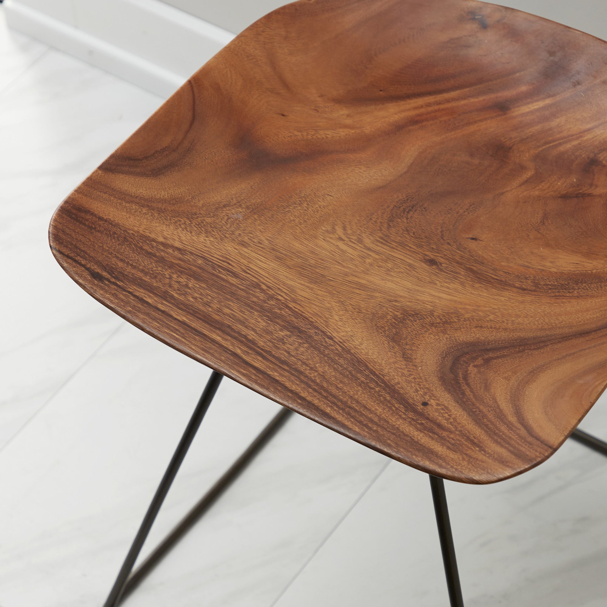 •This living room stool has a solid albizia wood seat mounted to a robust metal base, ensuring durability