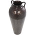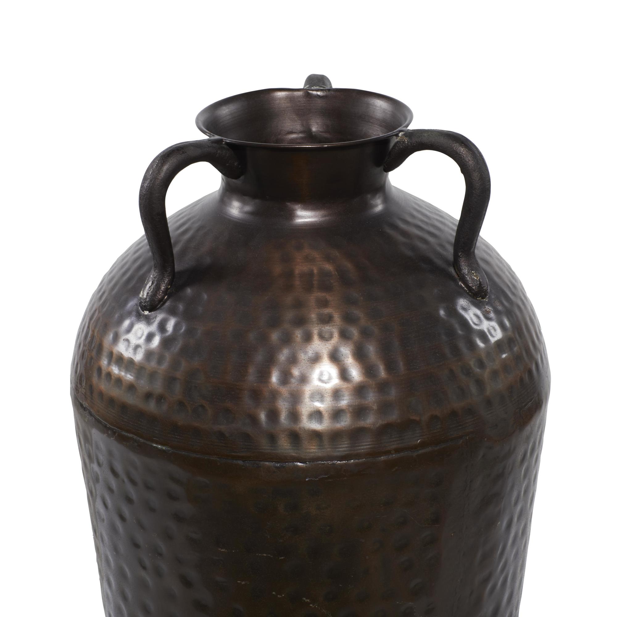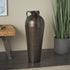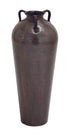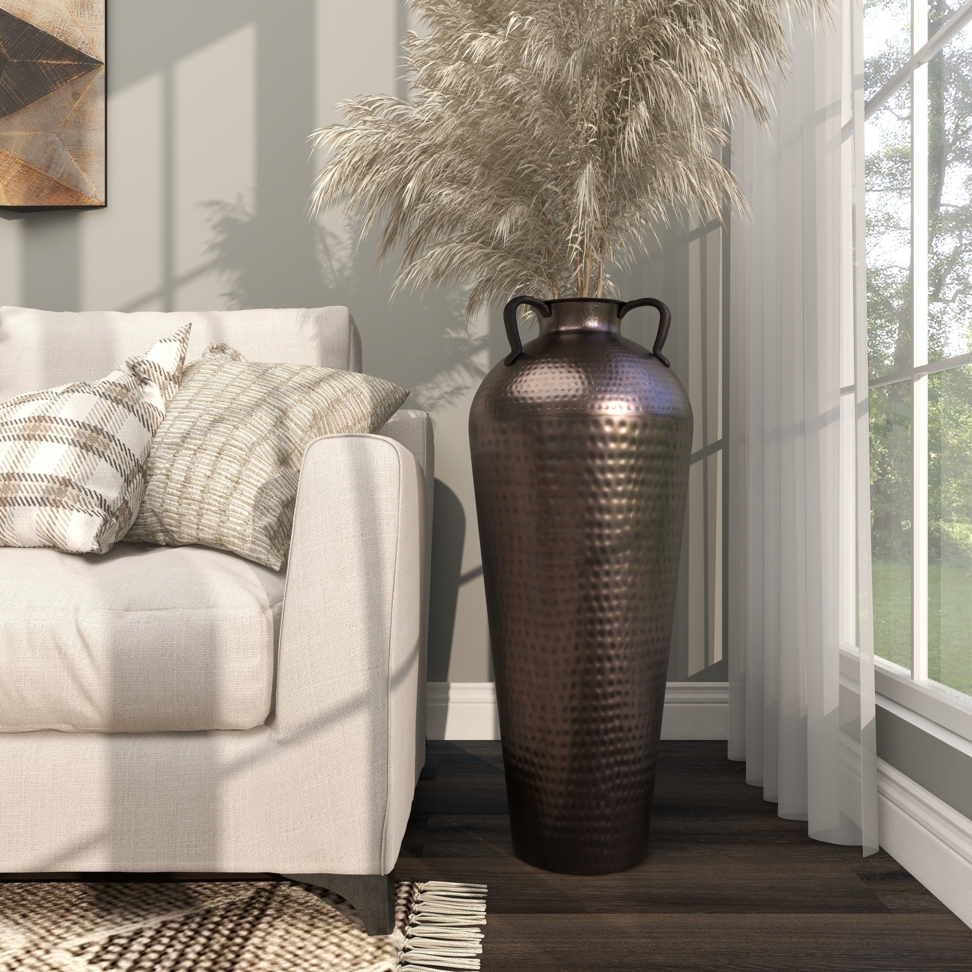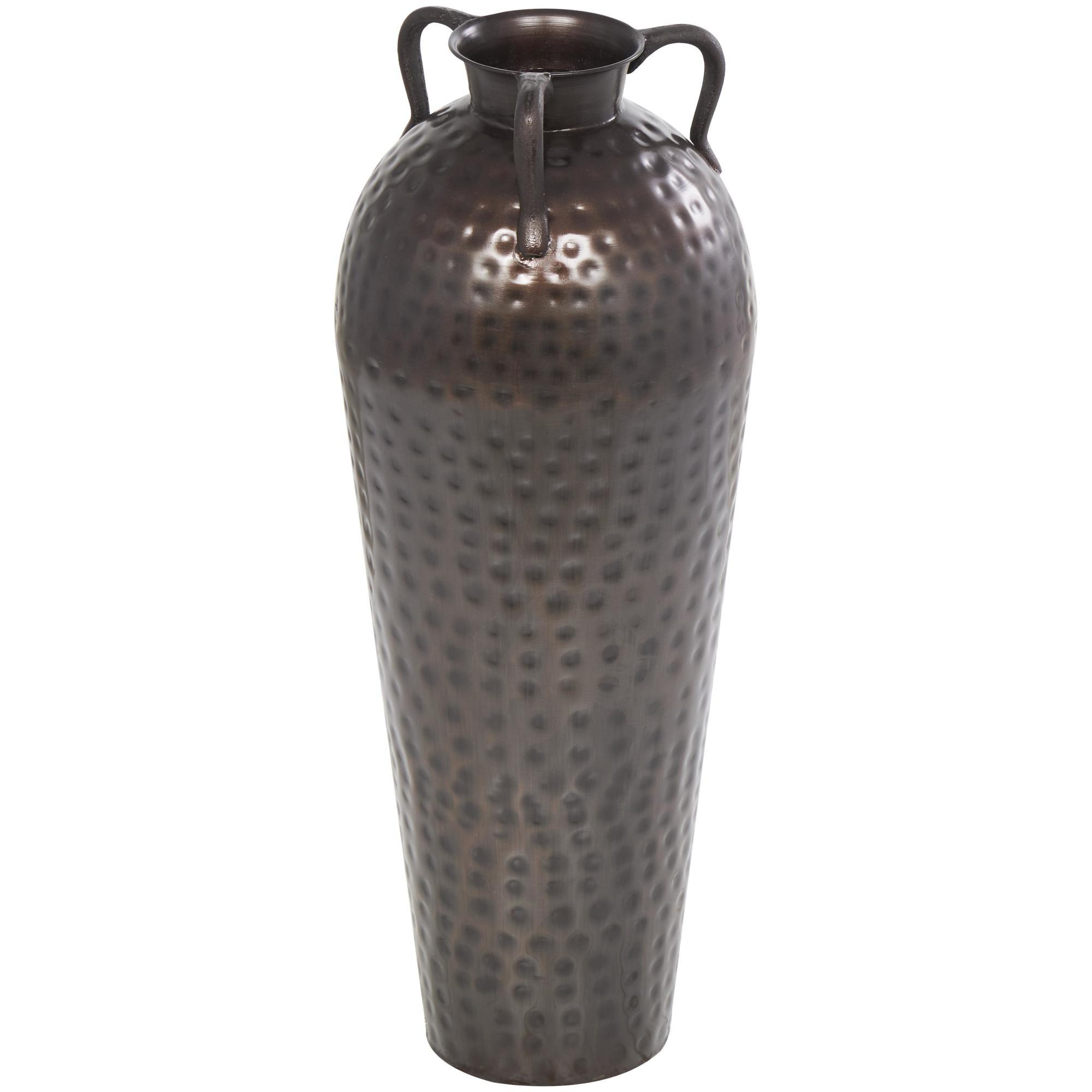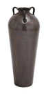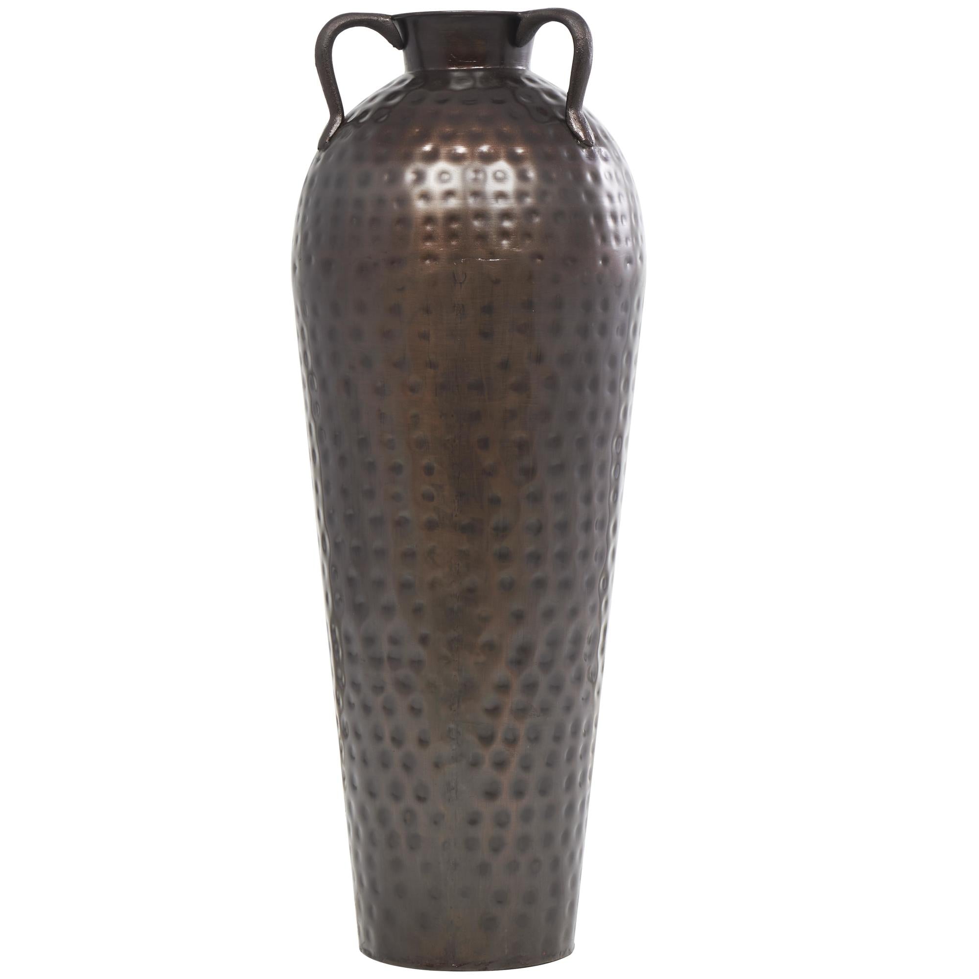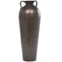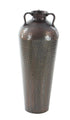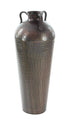 Brown Metal Tall Floor Mediterranean Style Decorative Vase with Hammered Details and Handles