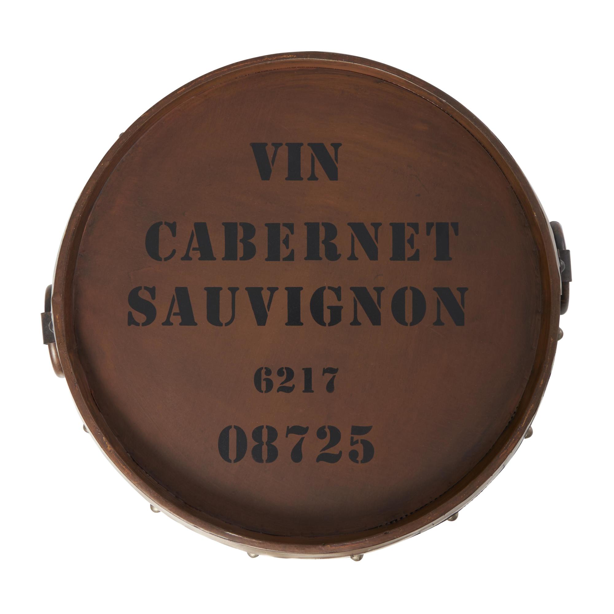 Bring a finishing touch to your home with an inviting appeal with this beautifully crafted accent table. A compact friendly table providing you with additional surface storage space any where in your home. Perfectly suited as a end table, it can beautifully compliment a rattan lamp next to an upholstered sofa adorned with soft throw pillows. This accent table has a completely finished back. This item ships in 1 carton. Suitable for indoor use only. This item ships fully assembled in one piece. Maximum weight limit is 100 lbs. This is a single end table. Farmhouse style. Features the words and numbers "VIN CABERNET SAUVIGNON, 6217, 08725".