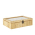 Brown Rattan Handmade Wrapped 6 Slot Decorative Jewelry Box with Tempered Glass Top