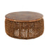 •The textured center table for the living room has a classic round shape with a checkered woven pattern, enhancing its versatility