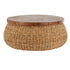 •The textured center table for the living room has a classic round shape with a woven pattern, enhancing its versatility