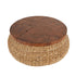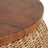 Brown Rattan Wrapped Living Room Coffee Table with Teak Tabletop
