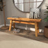 Brown Reclaimed Wood Handmade Home Bench with Natural Finish and High Trestle Legs