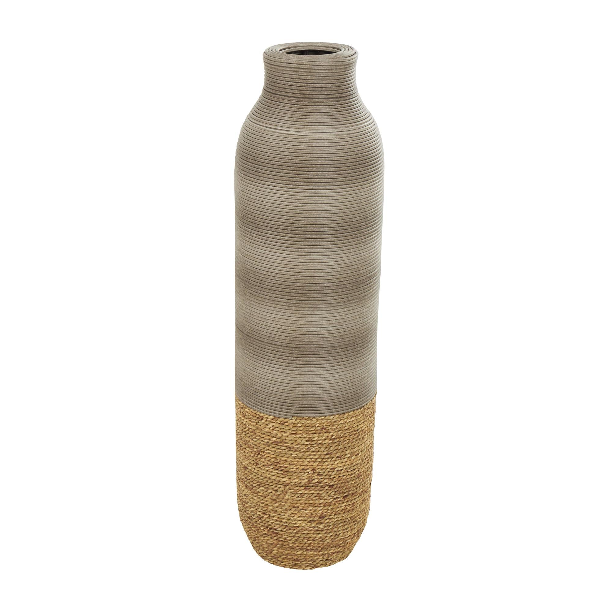 •This decorative vase is crafted from natural seagrass, MDF, and fabric