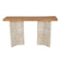 •The teak wood console table measures 55.5L x 17W x 31.2H inches, and weighs 83 lbs