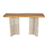This table fits perfectly in a modern living room setting, adding both functionality and style to the space. This console table has a completely finished back. This item ships in 1 carton. This one-of-a-kind item is made from the stumps and unused trunks of harvested teak trees, from ecologically managed forests. Once the tree is harvested, the remaining stumps must be removed to make space to plant replacement trees. In the past, these pieces would be harvested and then burned to dispose of them. Today we use these tree stumps and trunks to create beautiful, handcrafted pieces for your home. Coloring, cracks, and shapes will vary between items. Suitable for indoor use only. This item ships fully assembled in one piece. Due to the live edges of the piece, each is unique, so no two products will have an identical pattern, shade, or cut. Maximum weight limit is 100 lbs. Made in Indonesia. This is a single kitchen table. Contemporary style.