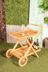 Brown Teak Wood Indoor Outdoor Rolling 2 Shelves Home Bar Cart with Wheels and Handle
