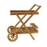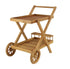 •The traditional beverage cart is constructed with precisely cut and oiled teak pieces attached together via screws, showcasing expert craftsmanship