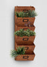 Brown Wood 6 Slots Decorative Magazine Rack Holder with Suspended Baskets and Label Slot