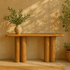 Brown Wood Handmade Rectangular Living Room Console Table with Pillar Legs