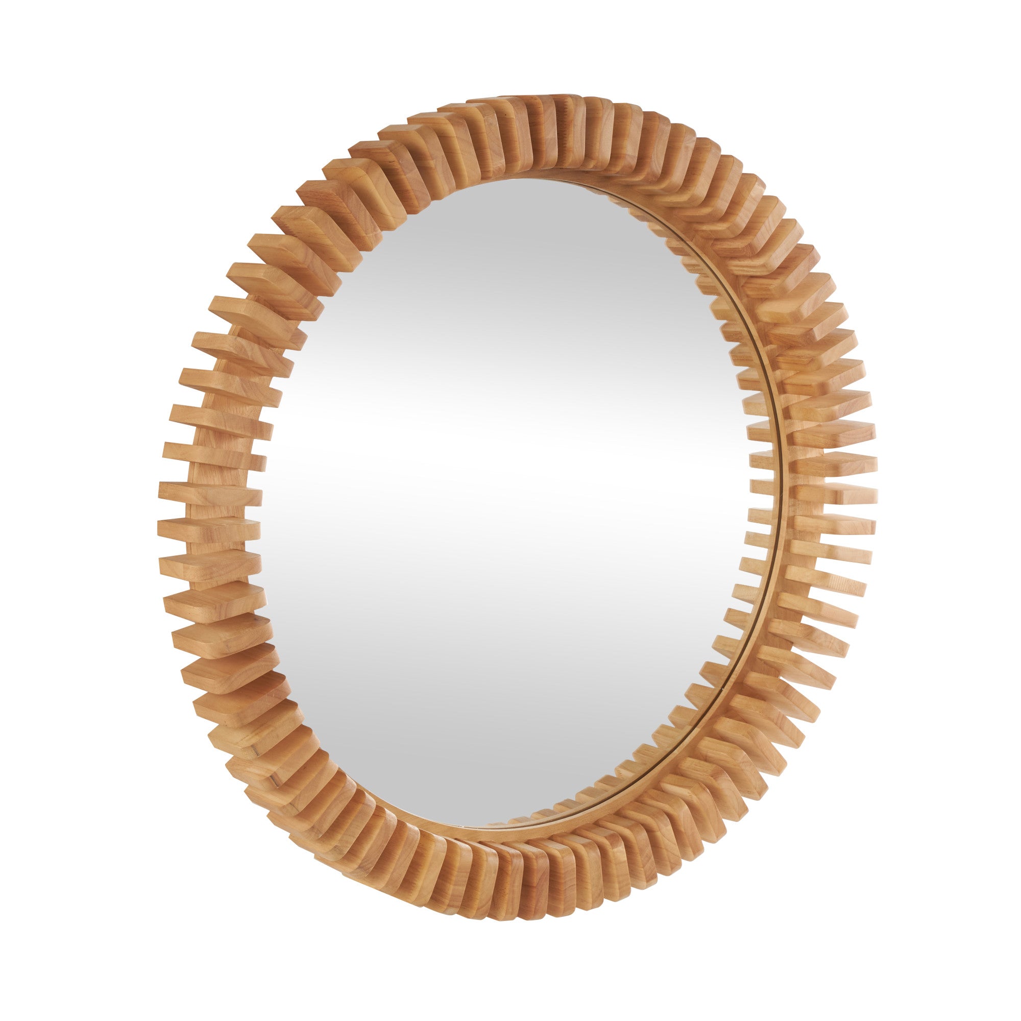 •With its classic round shape and linear pattern, this textured mirror for wall brings a timeless appeal to any decor