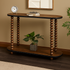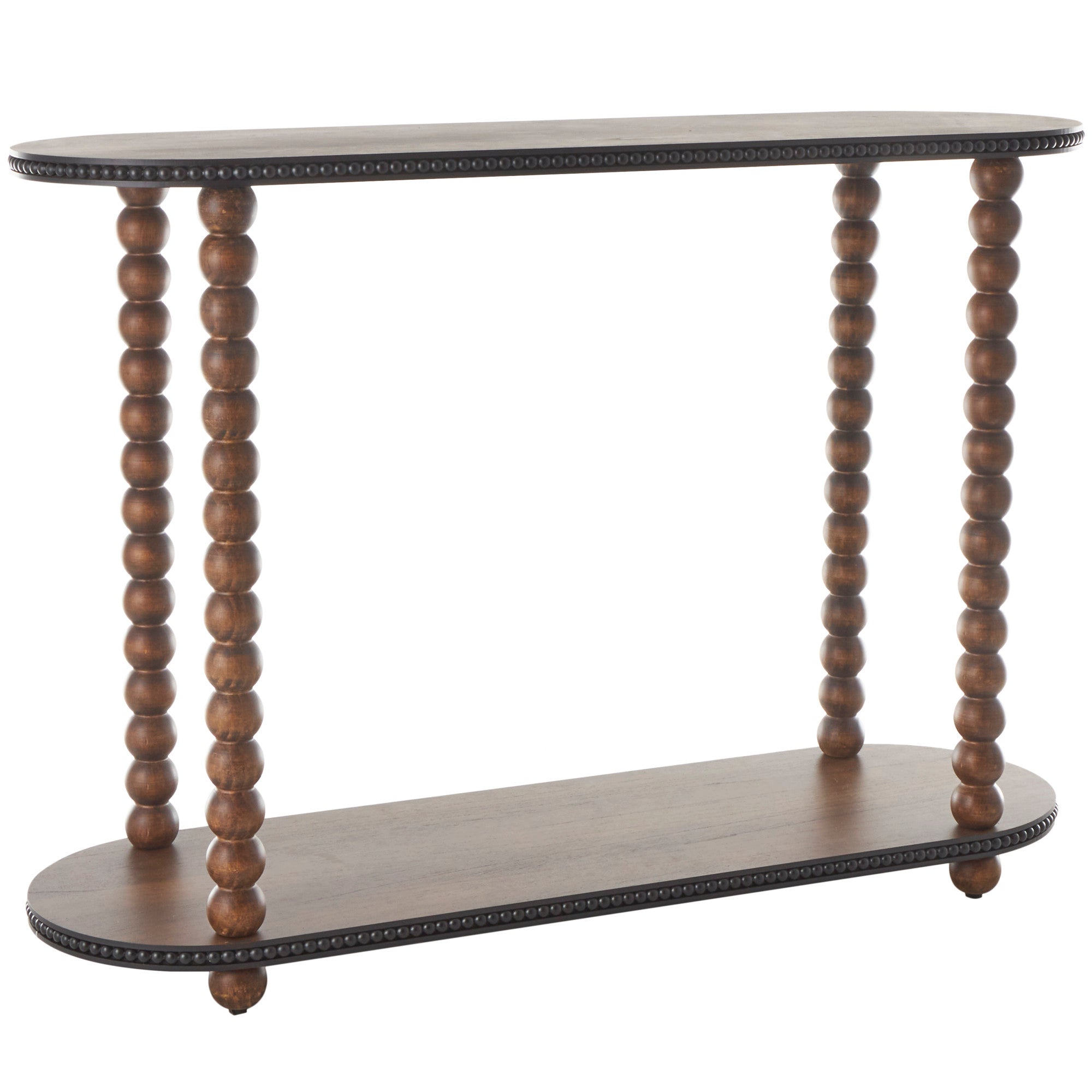 Brown Wood Oval Spindle Living Room Console Table with Beaded Edges