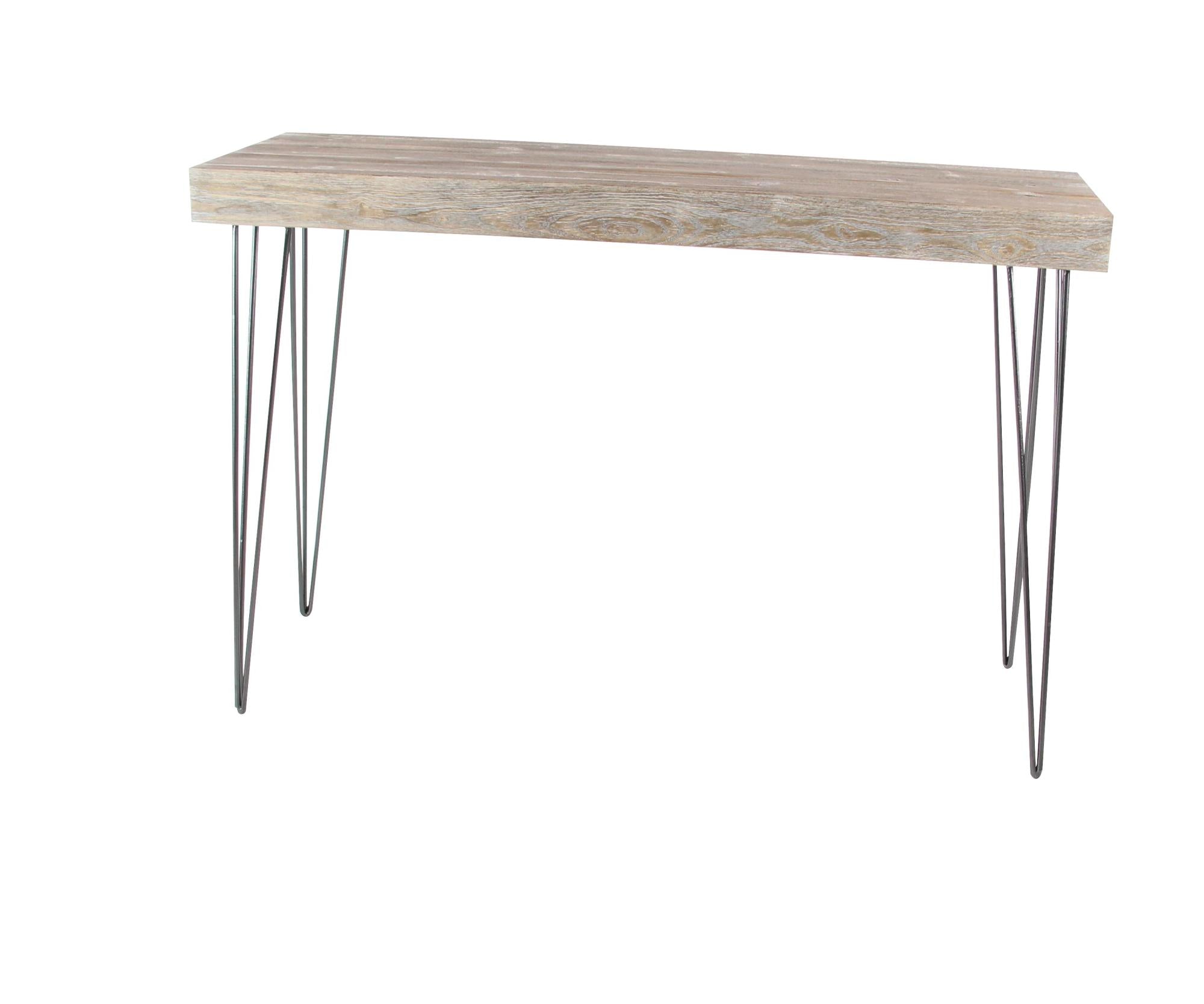 •The fir console table flaunts hairpin leg stands for an elegantly streamlined effect