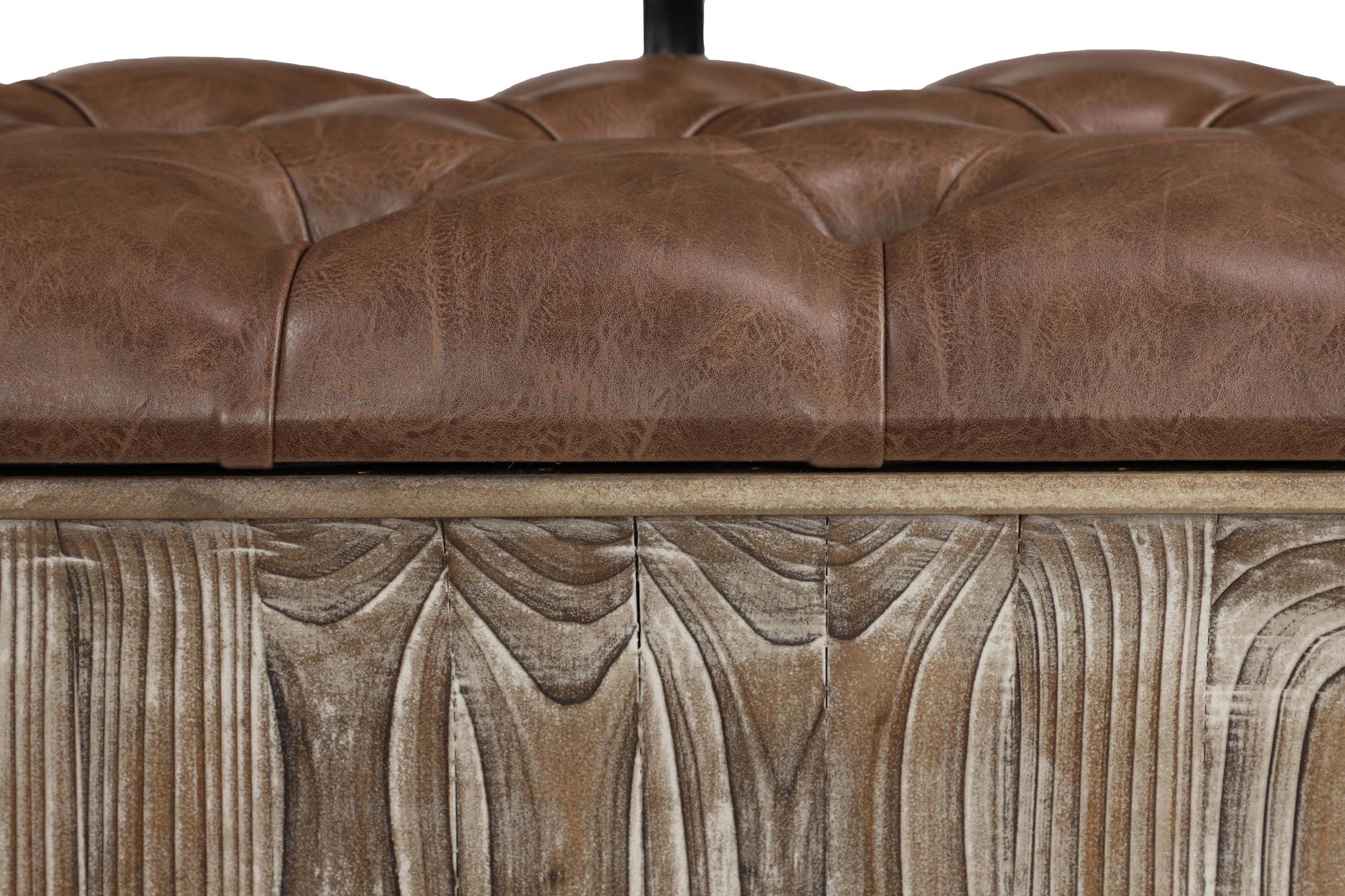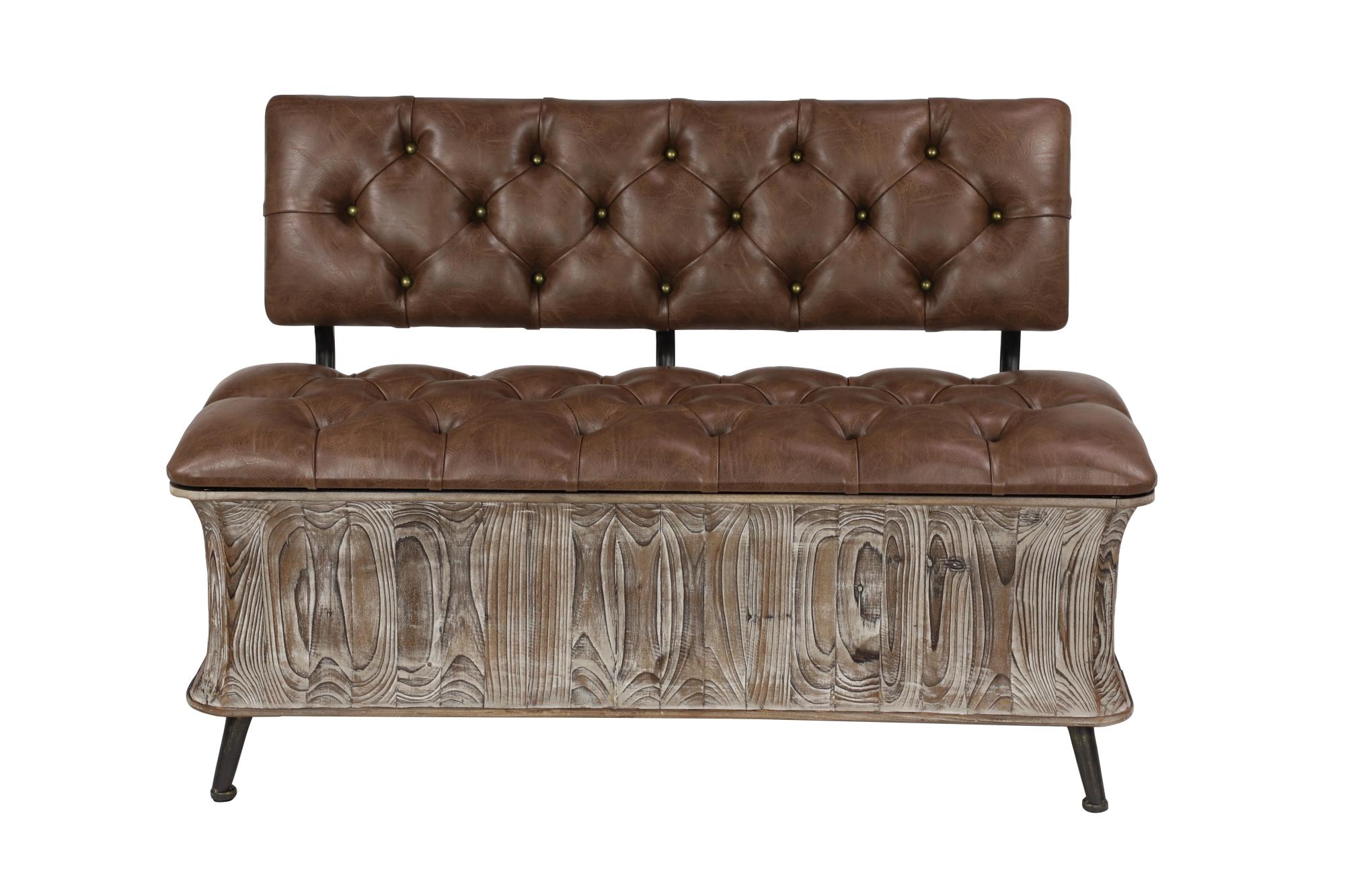 •The washed bench with lift top storage carries a rectangle shape with round buttons on the seat and backrest