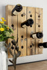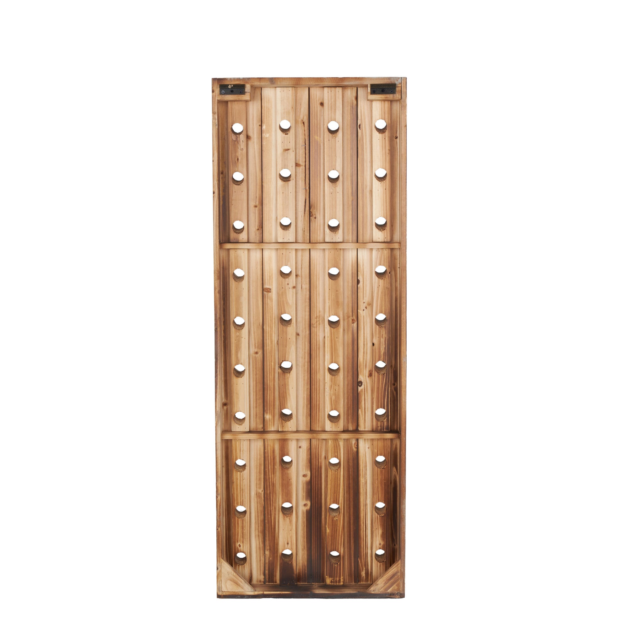 Display and organize your wine bottles with this rustic riddling wine bottle rack mounted on your walls. This item ships in 1 carton. Can be hung vertically using the brackets; nails and screws not included. Suitable for indoor use only. This item ships fully assembled in one piece. Maximum weight limit is 100 lbs. This is a single wall mounted wine holder. Rustic style. wall wine rack can hold 40 average wine bottles.