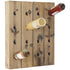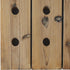 •Wooden slats with carved holes as holders are attached together to form riddling wine rack