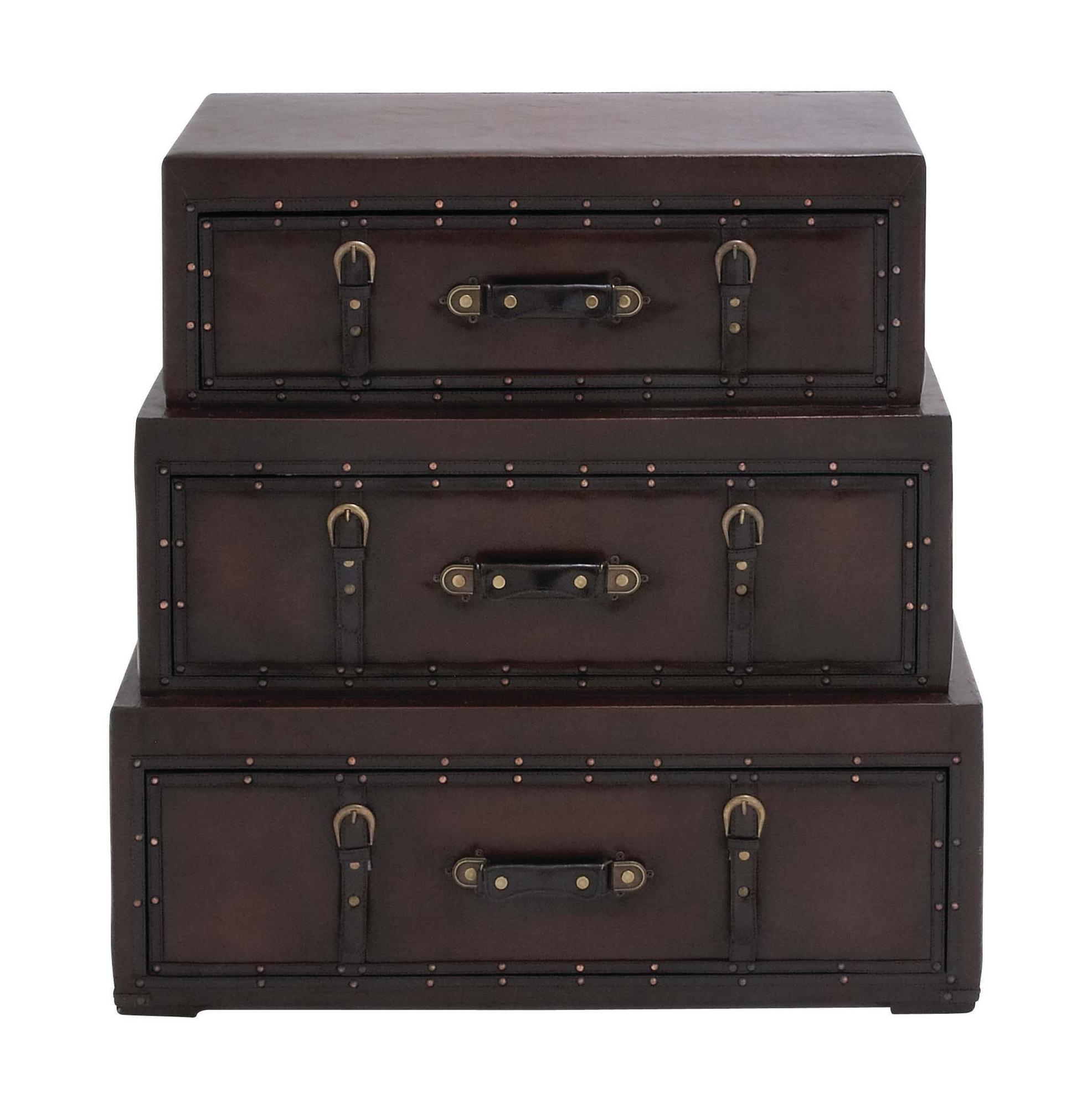 •Smooth chest closet storage offers a rectangle shape designed like stacked luggage complete with handles for added charm