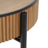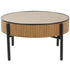 •Matte center table for the living room adopts a natural round shape which is beautifully complemented by the vertical wood slats and the matte finish
