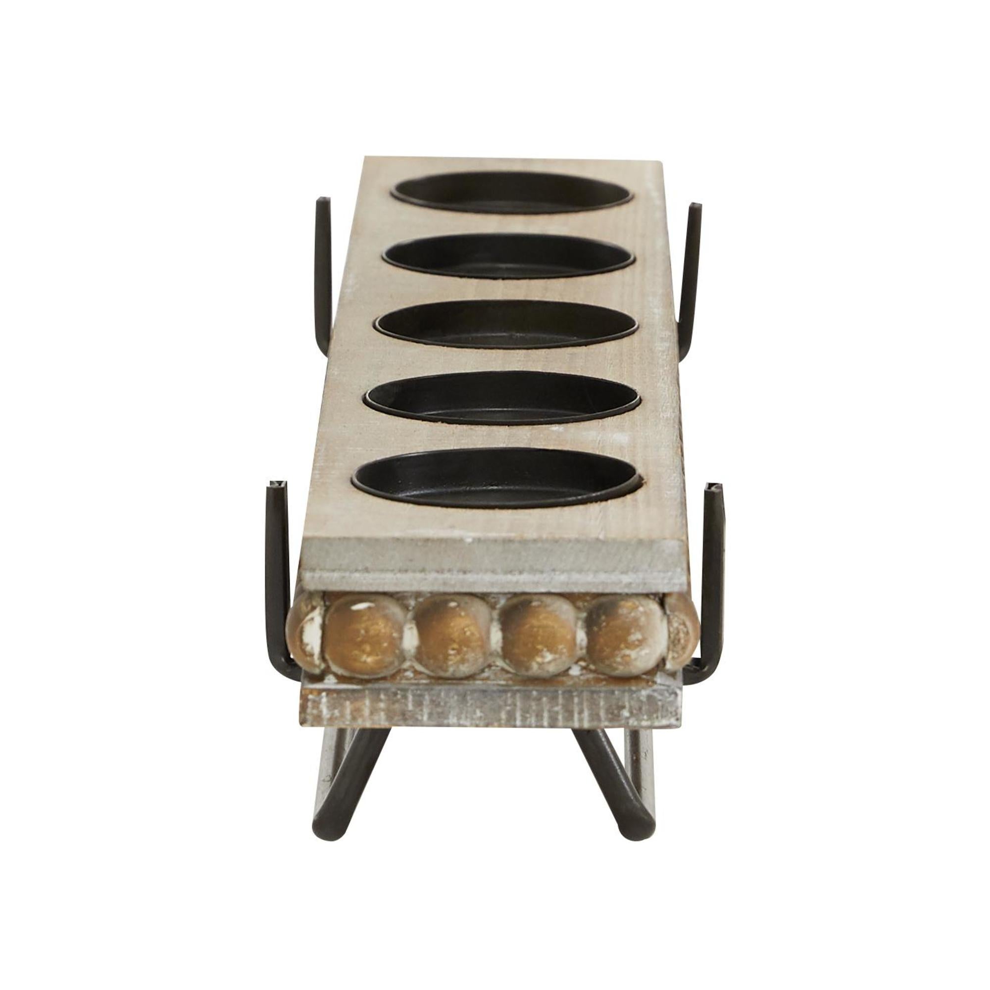 •The coastal decorative candleholder features a carved MDF holder with five slots mounted on welded iron stands