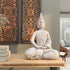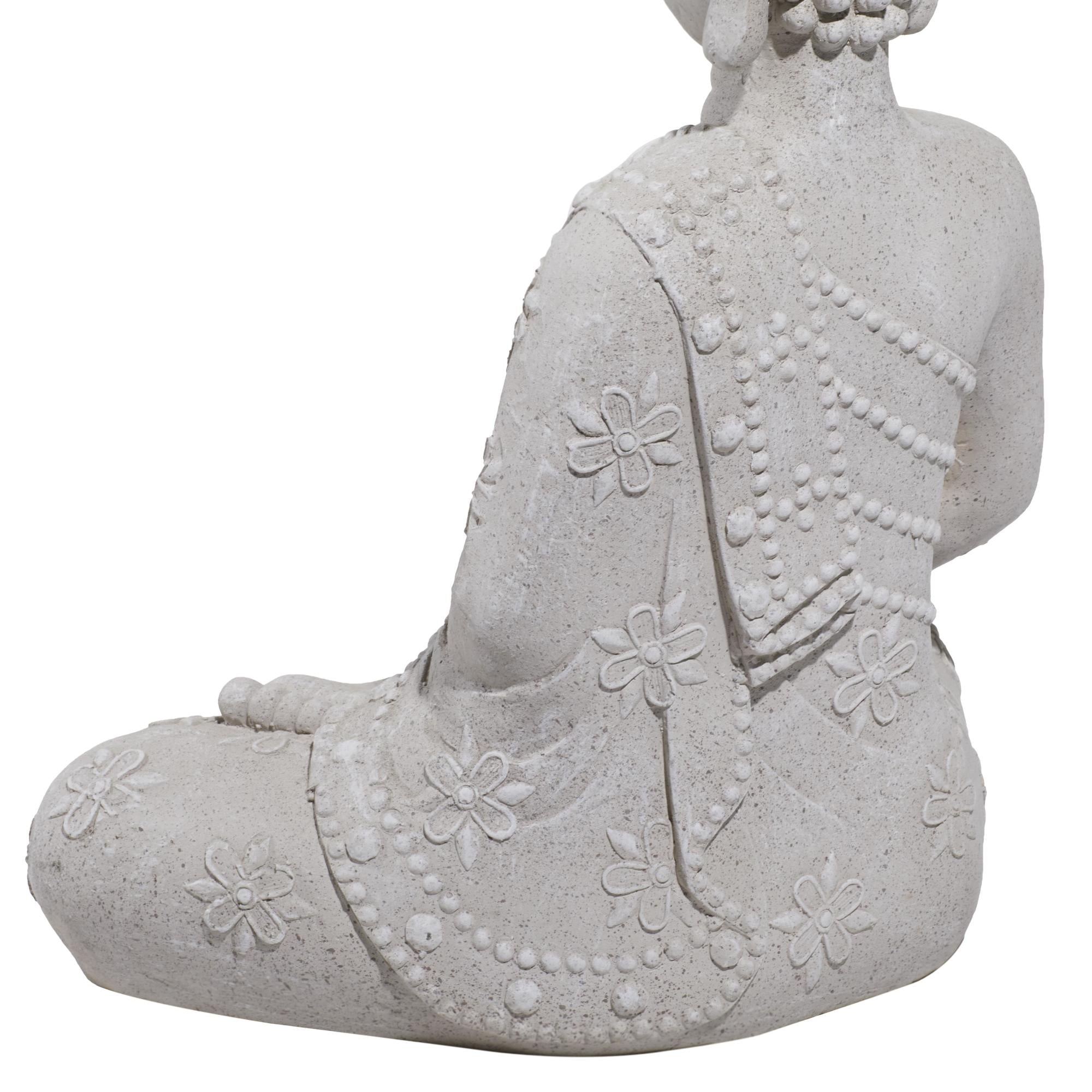 •The calm pose of this magnesium oxide garden sculpture infuses a sense of serenity into any environment