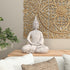 Buddha Gray Magnesium Oxide Indoor Outdoor Meditating Decorative Garden Sculpture with Floral Carvings