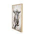 •This modern framed canvas art is crafted with a running bull image shaded on a canvas encased in a polystone frame with a carved fir wood backing