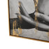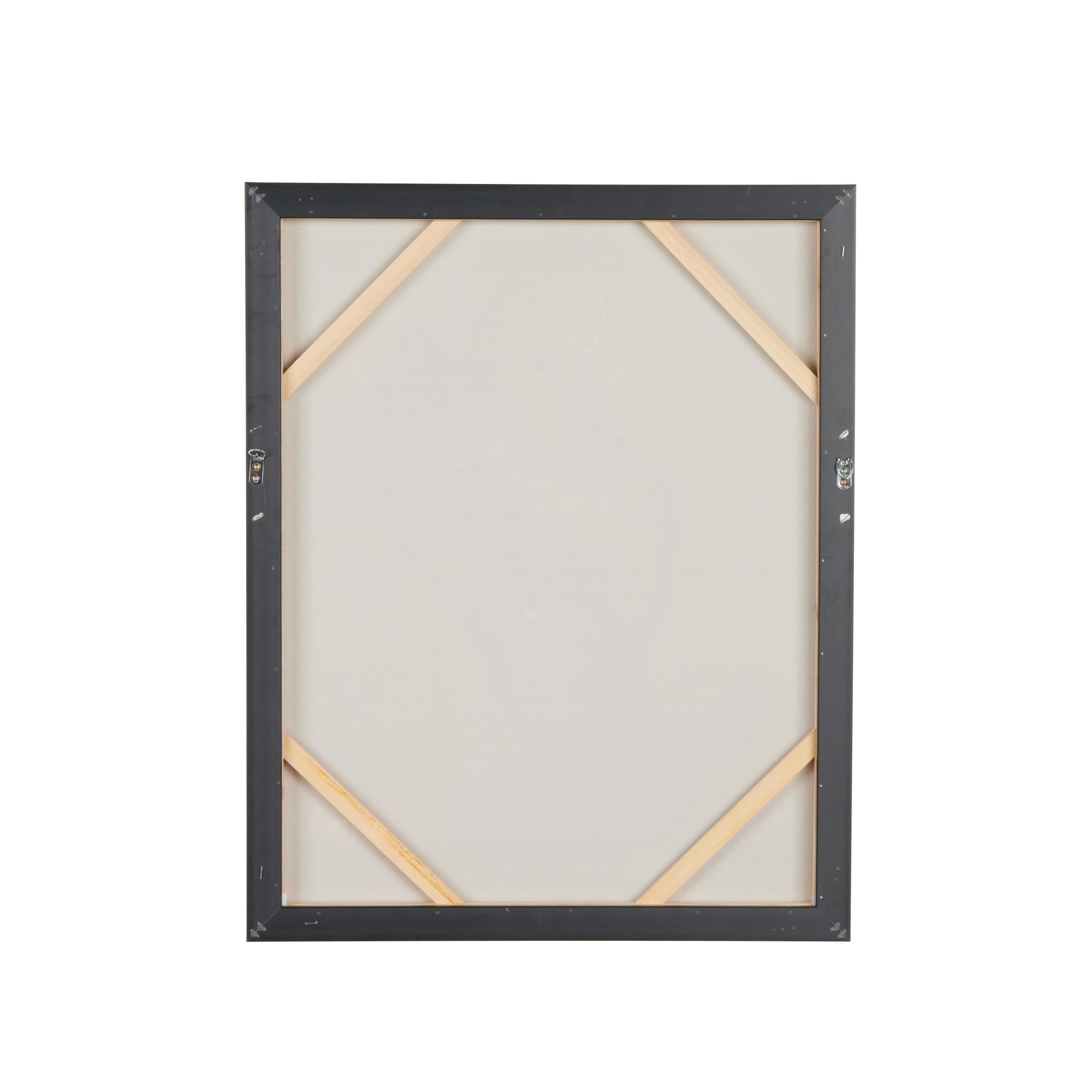 •The modern framed canvas is constructed with iron and polystone elements laid on the canvas, and encased with a fir frame to ensure support and stability
