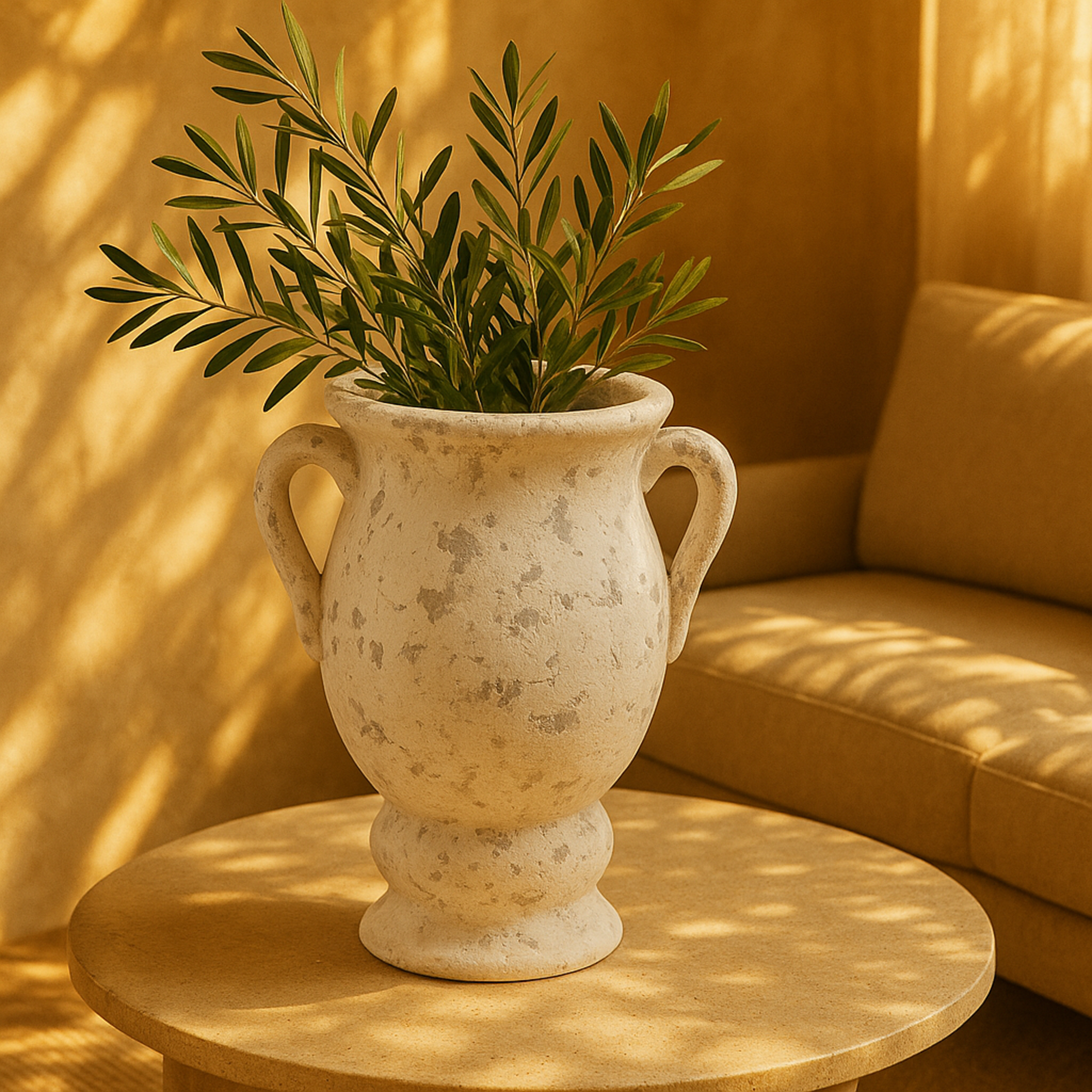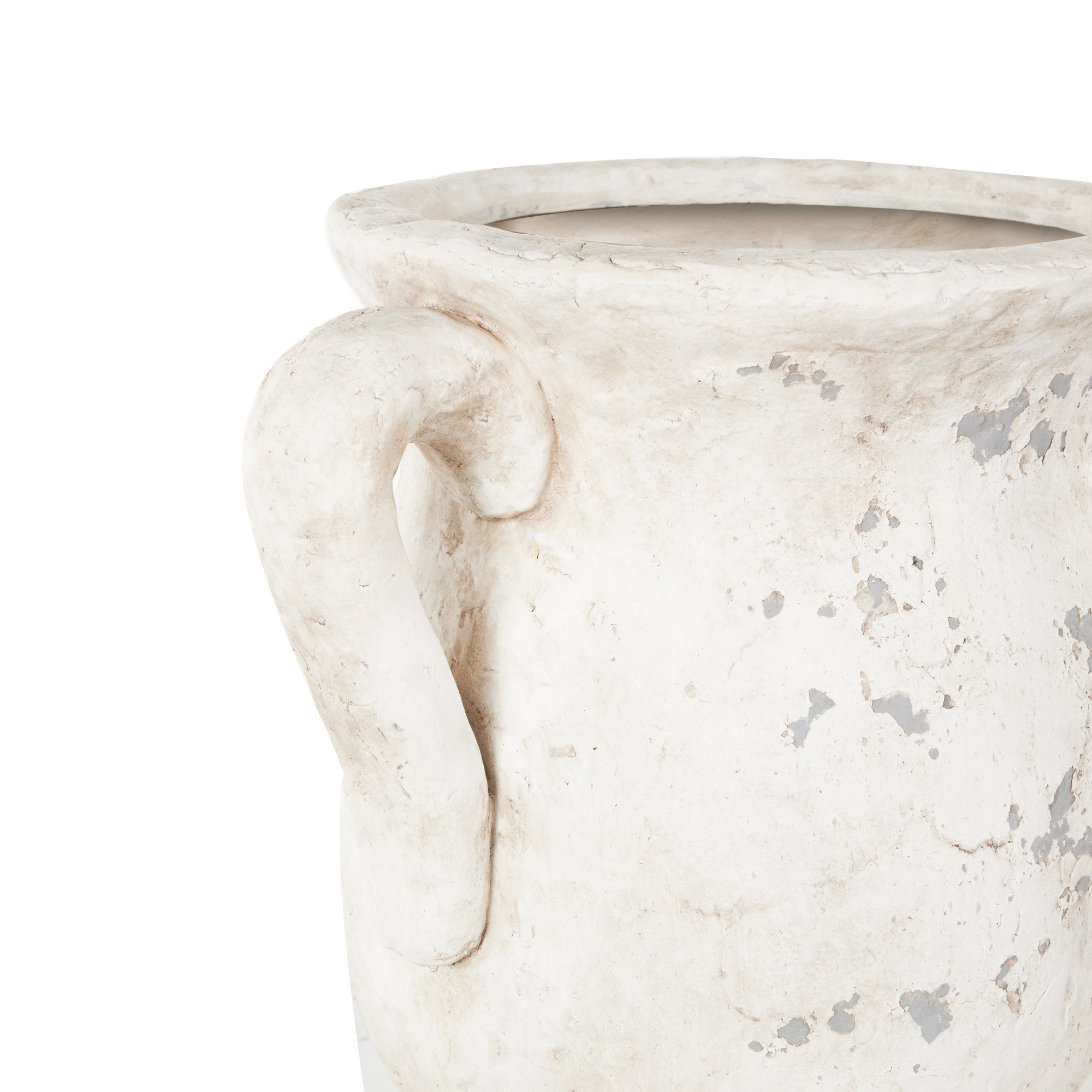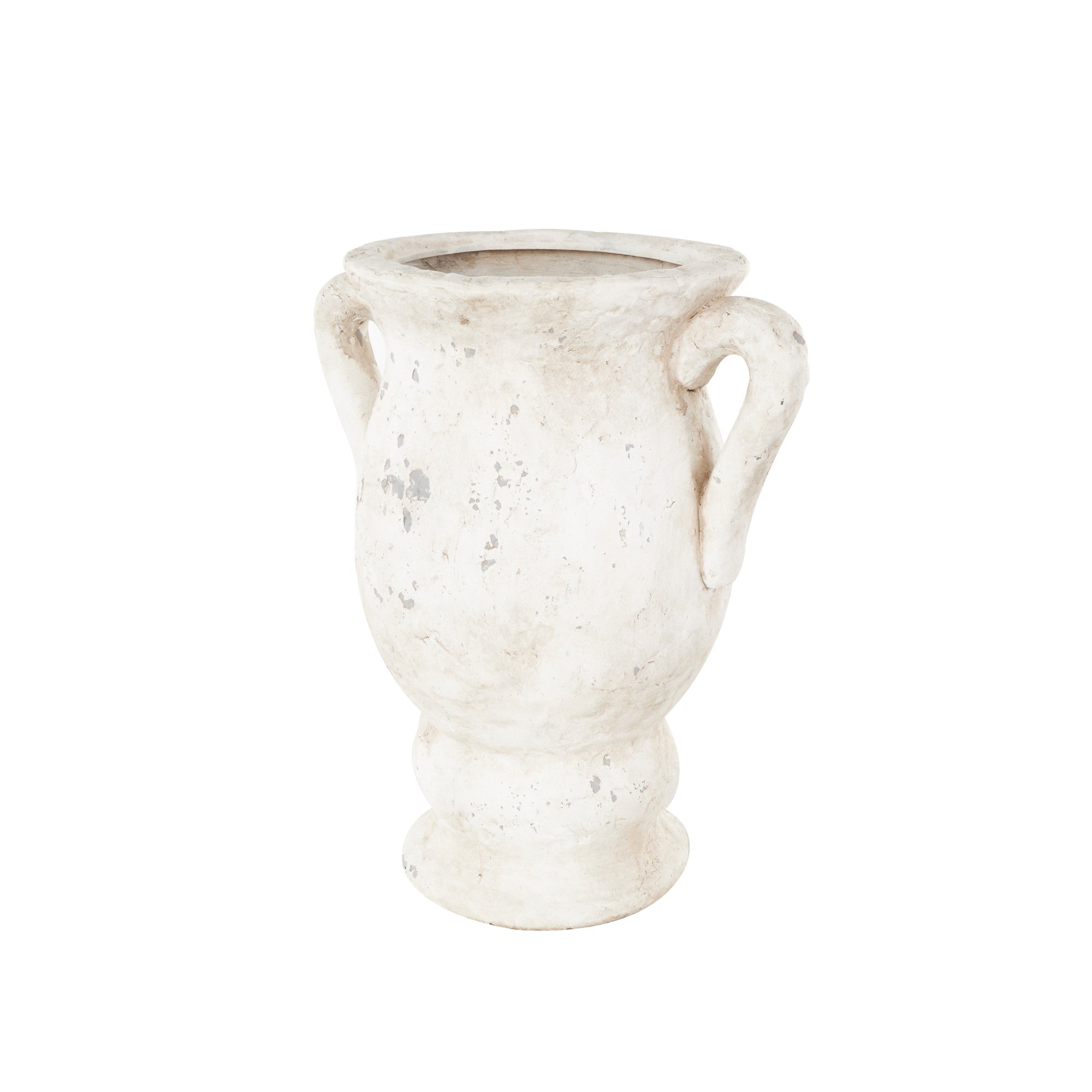 •With its amphora shape body, wide opening, and curved handles, this distressed vase for dried flowers adds timeless elegance to any space