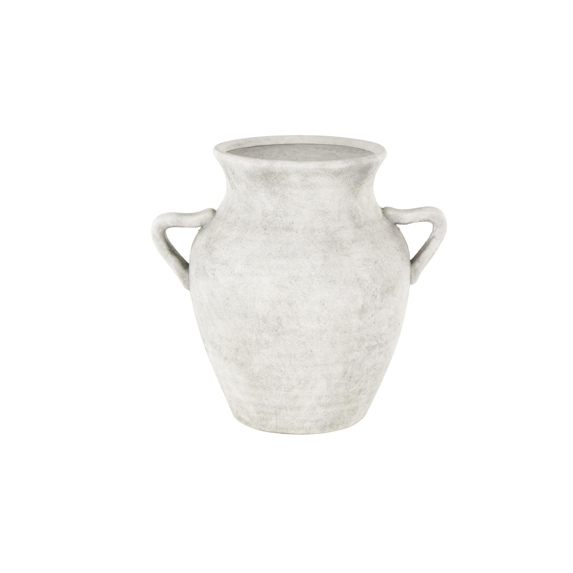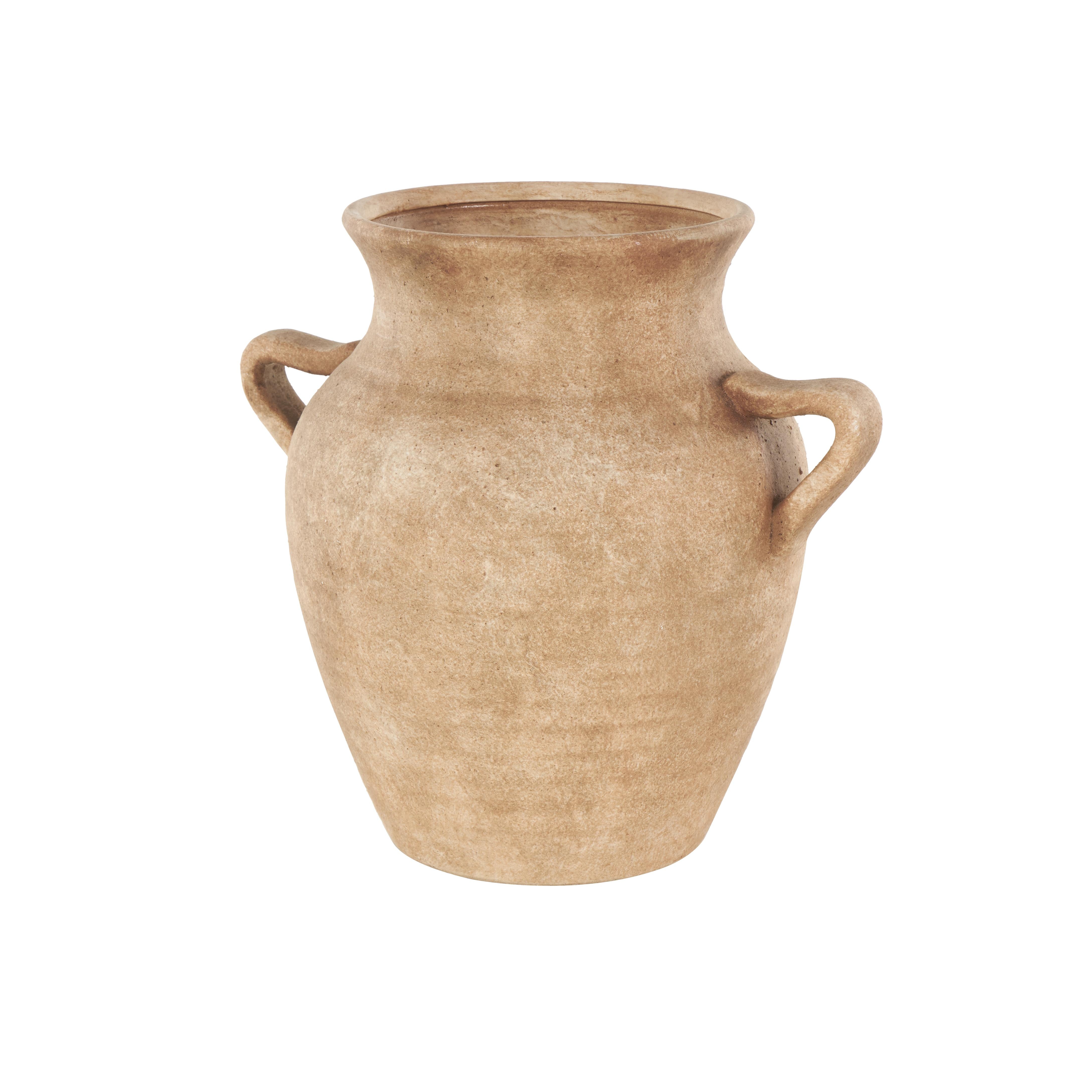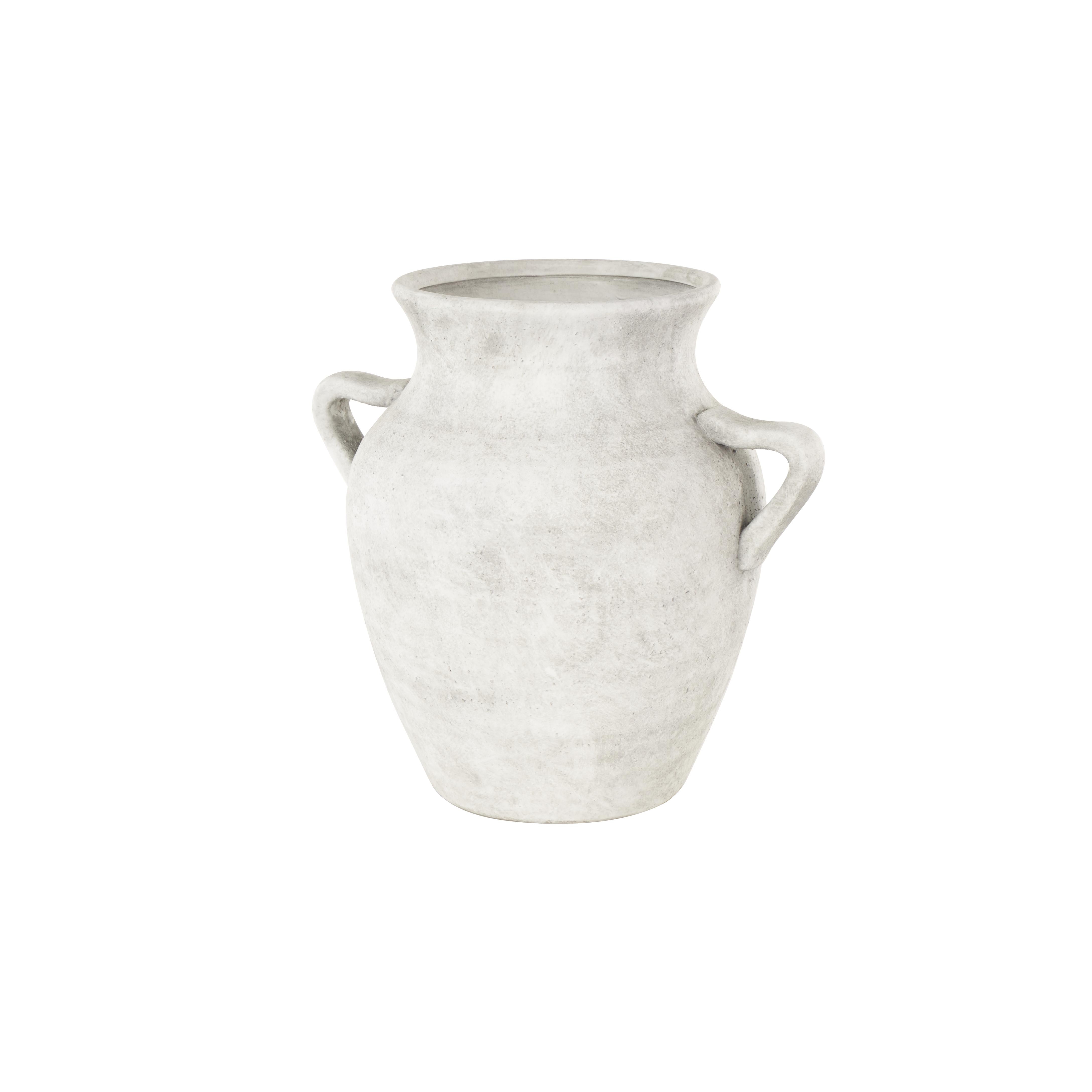 •This ceramic vase features antique handles for added charm and easy carrying