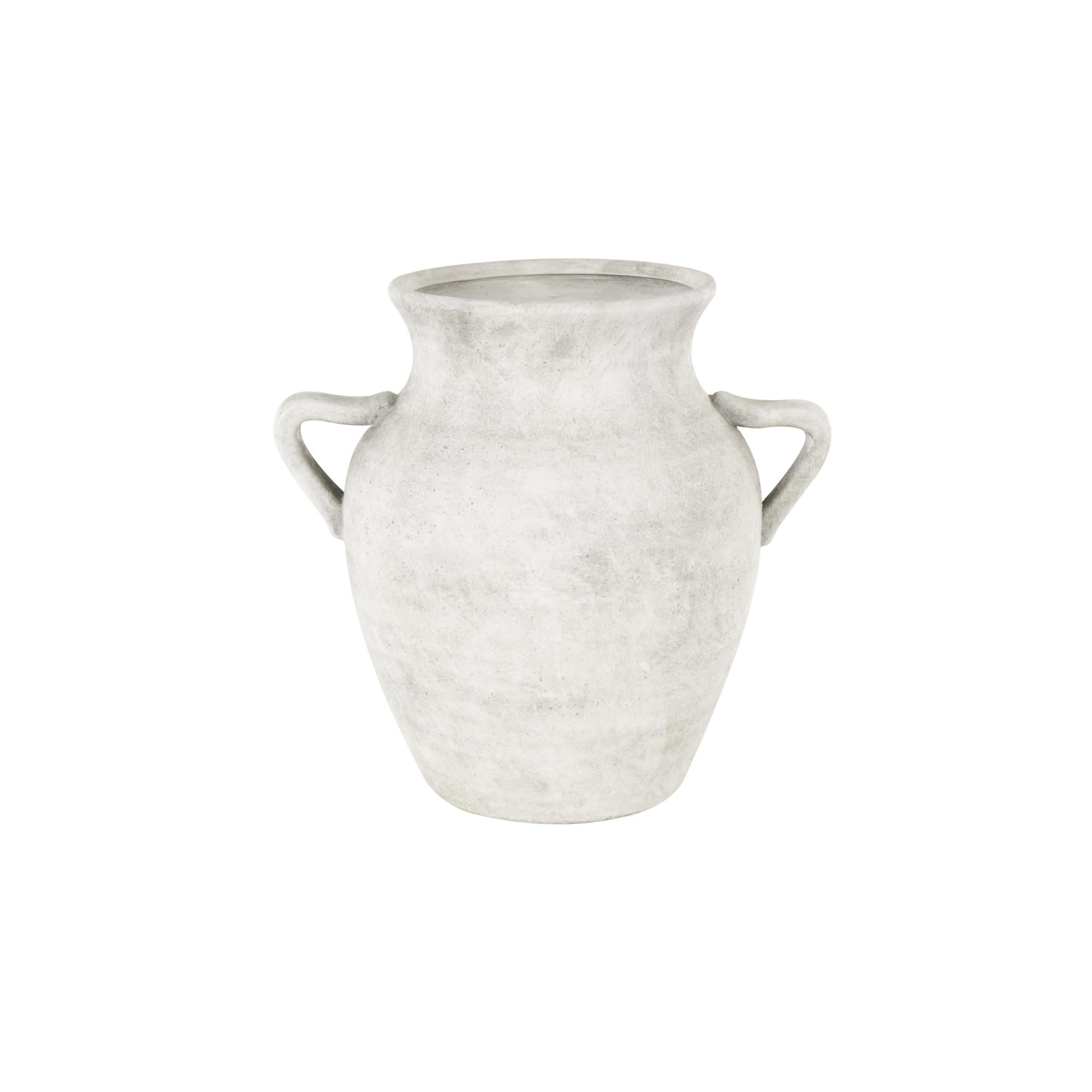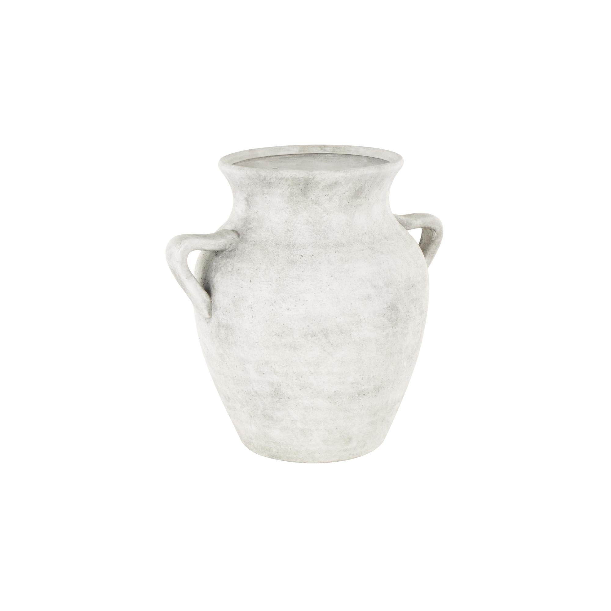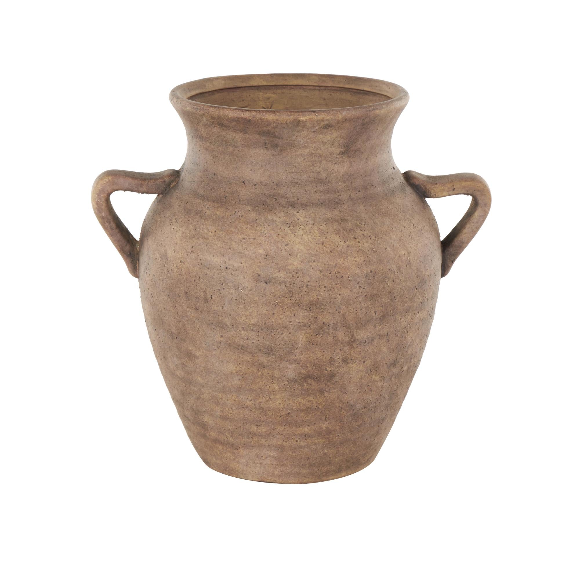 •This ceramic vase features antique handles for added charm and easy carrying