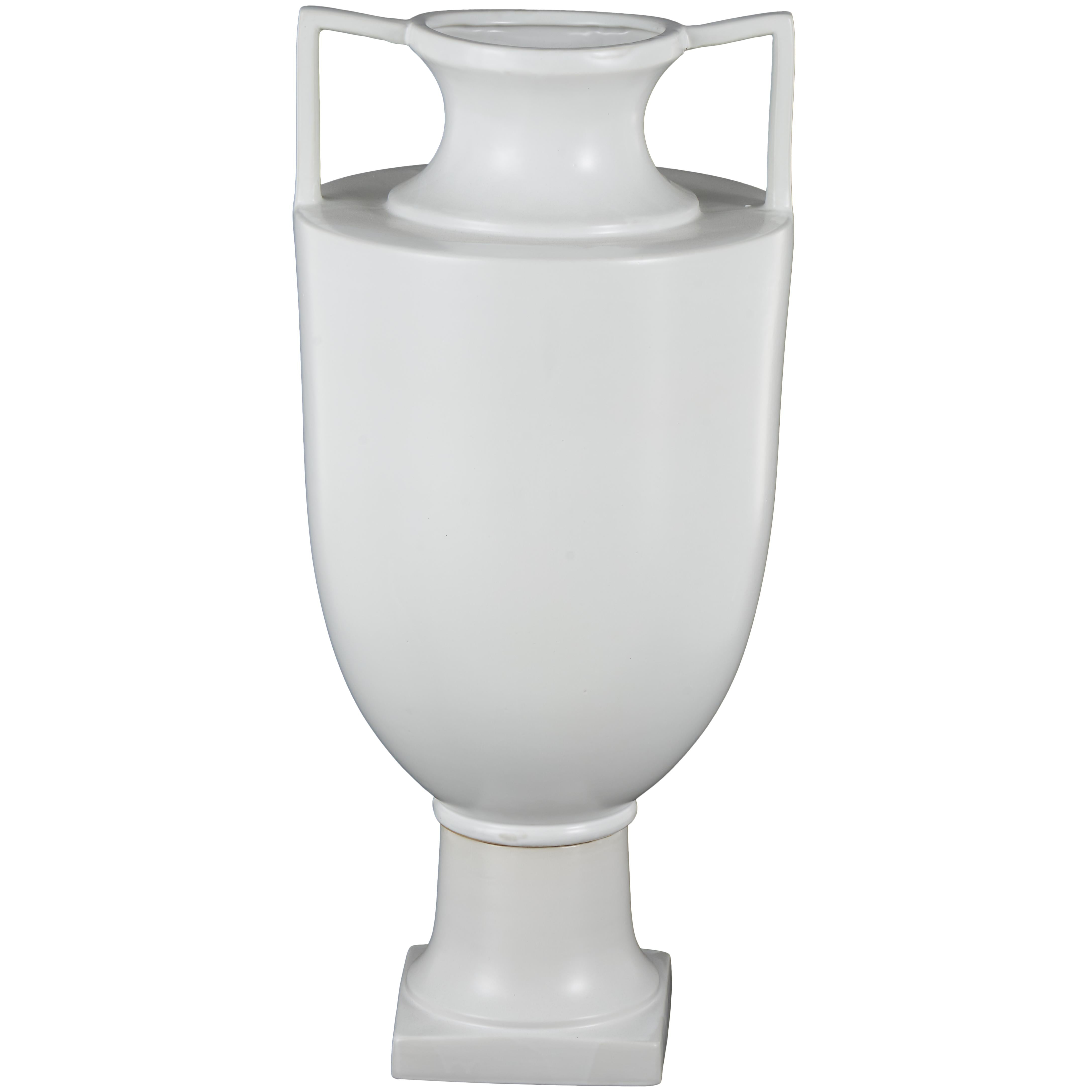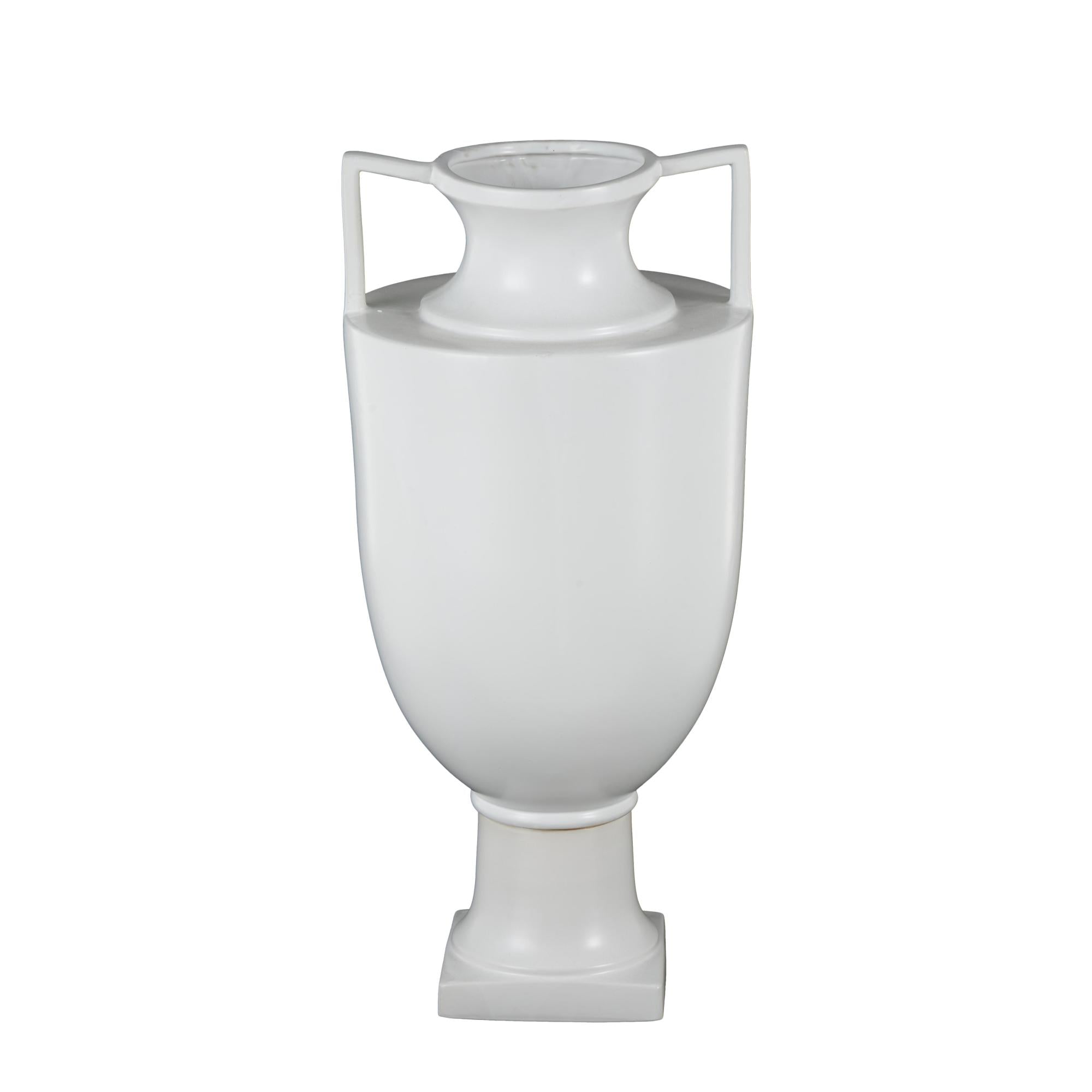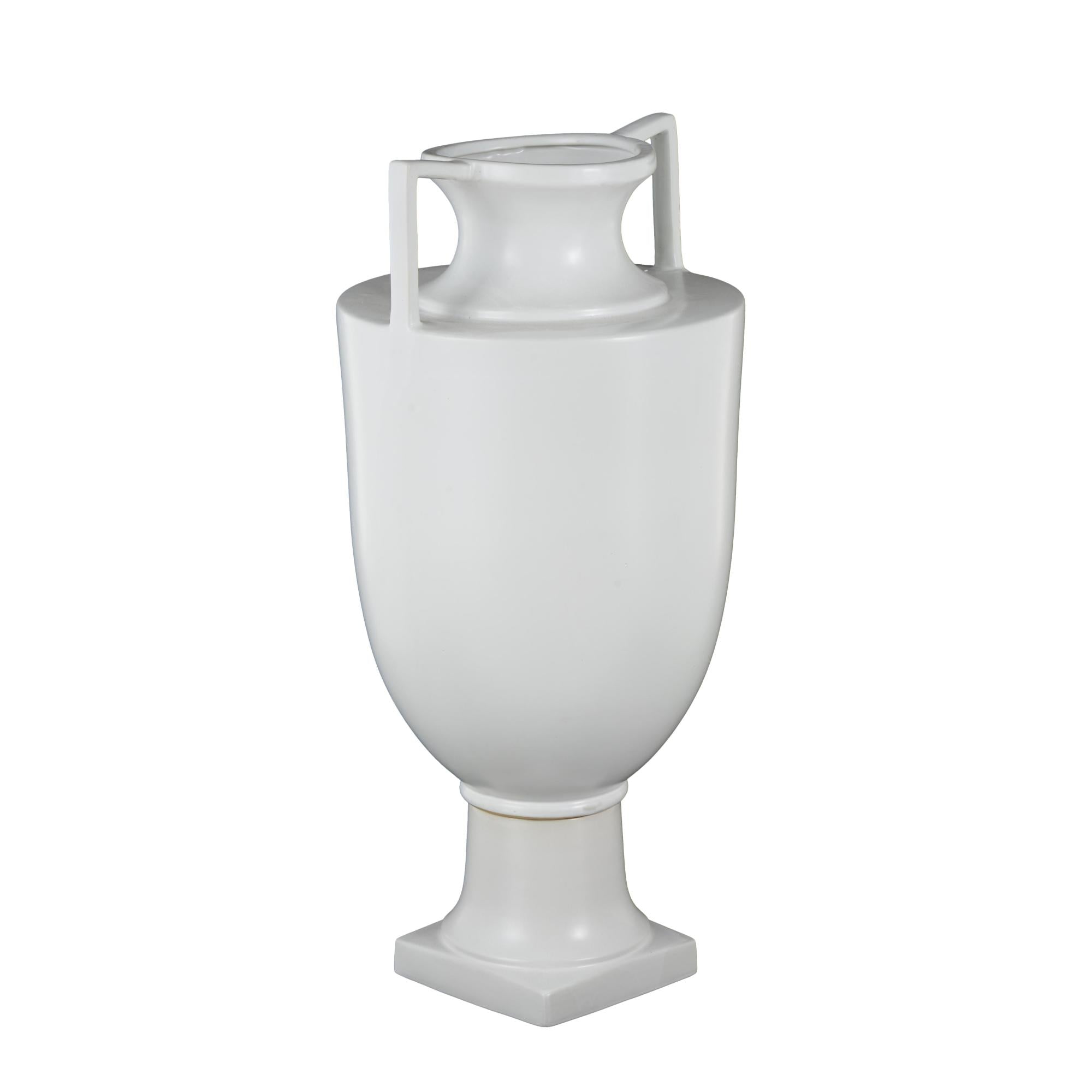 •With its unique fluted urn design and practical handles, this ceramic vase adds both style and functionality to any setting