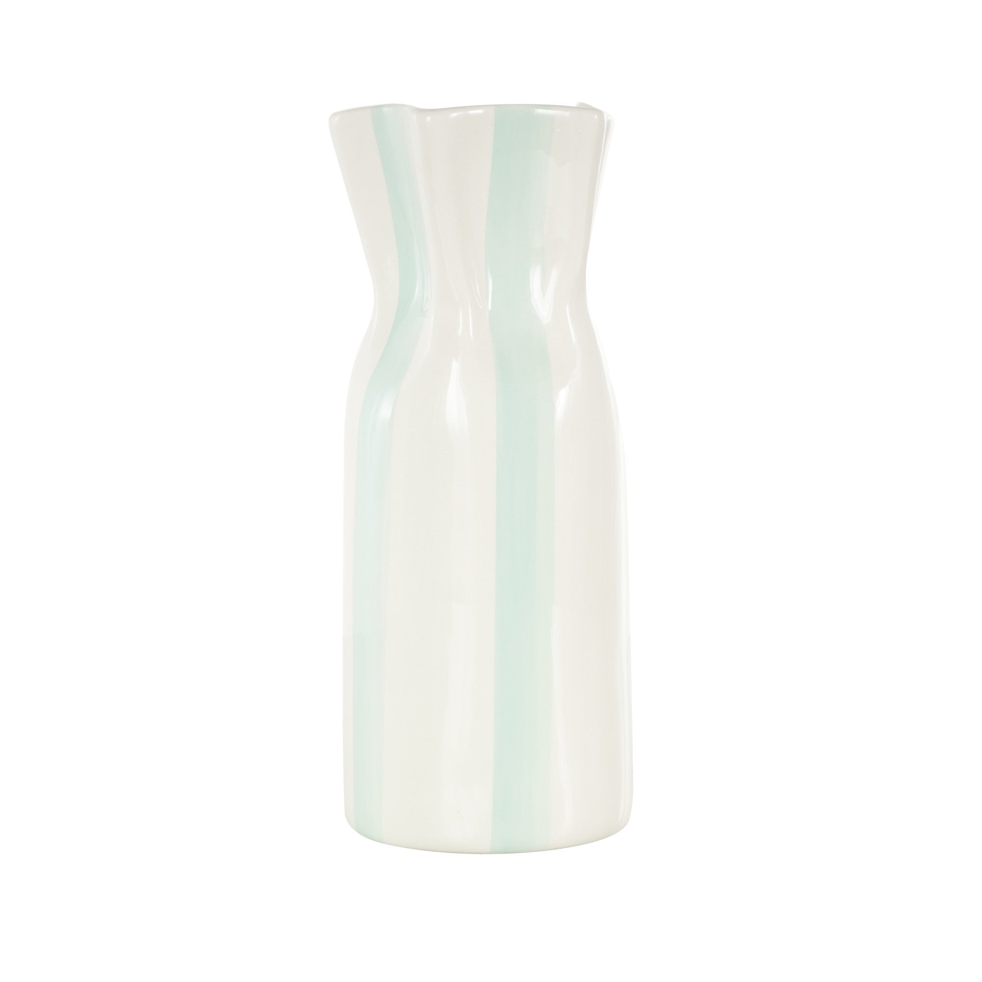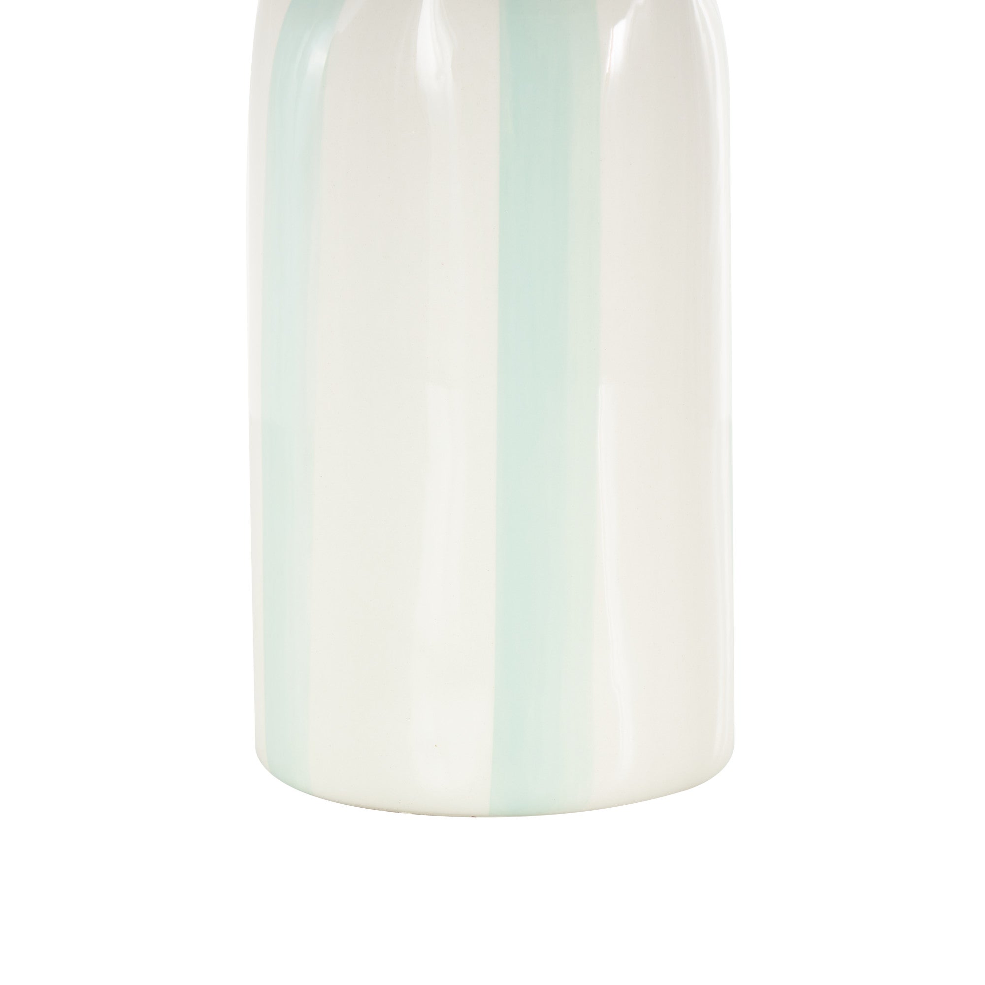 •This ceramic vase boasts a stunning striped pattern, adding a touch of sophistication to any room