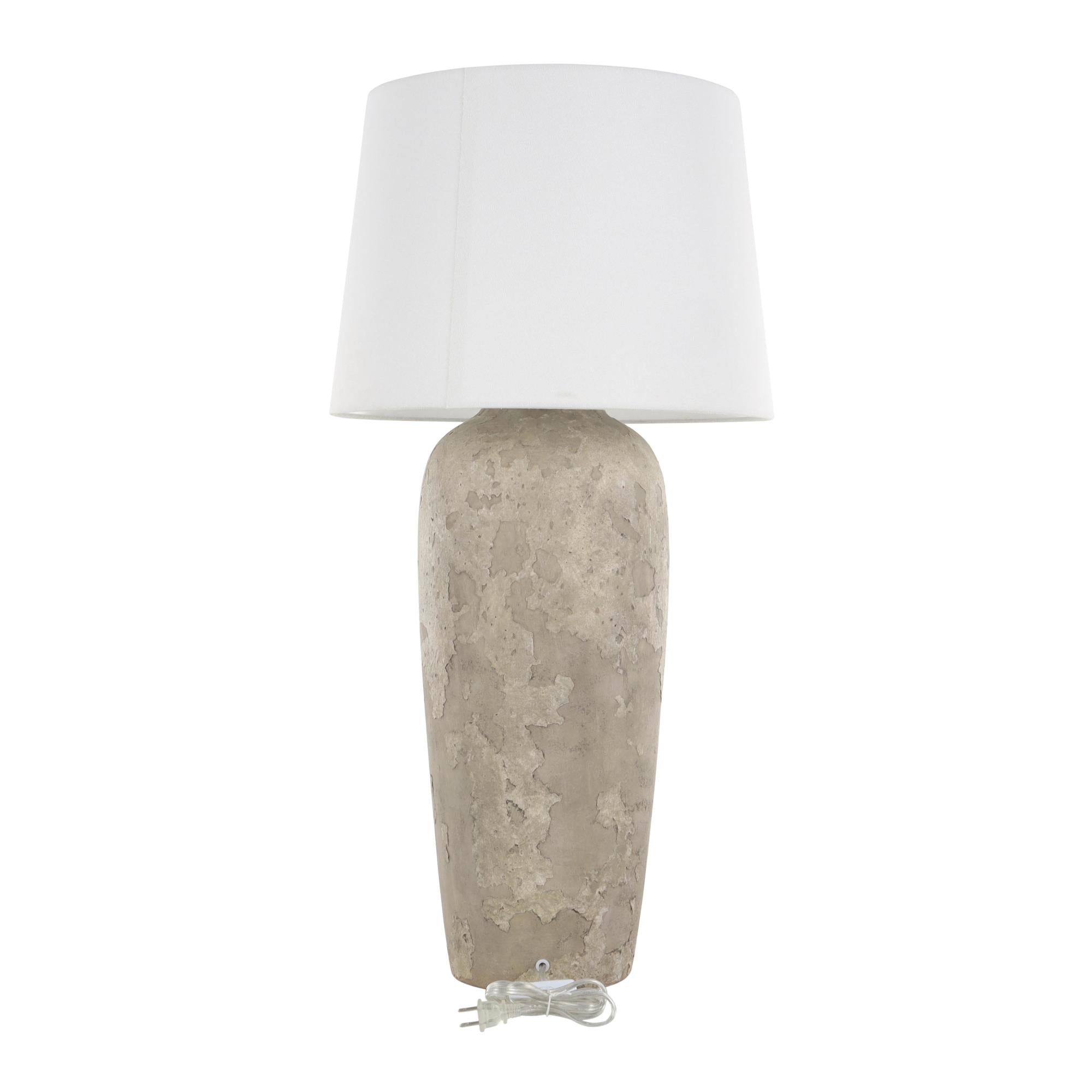 Ceramic Tall Distressed Antique Style Textured Room Table Lamp with Cream Linen Shade 17" x 17" x 35"