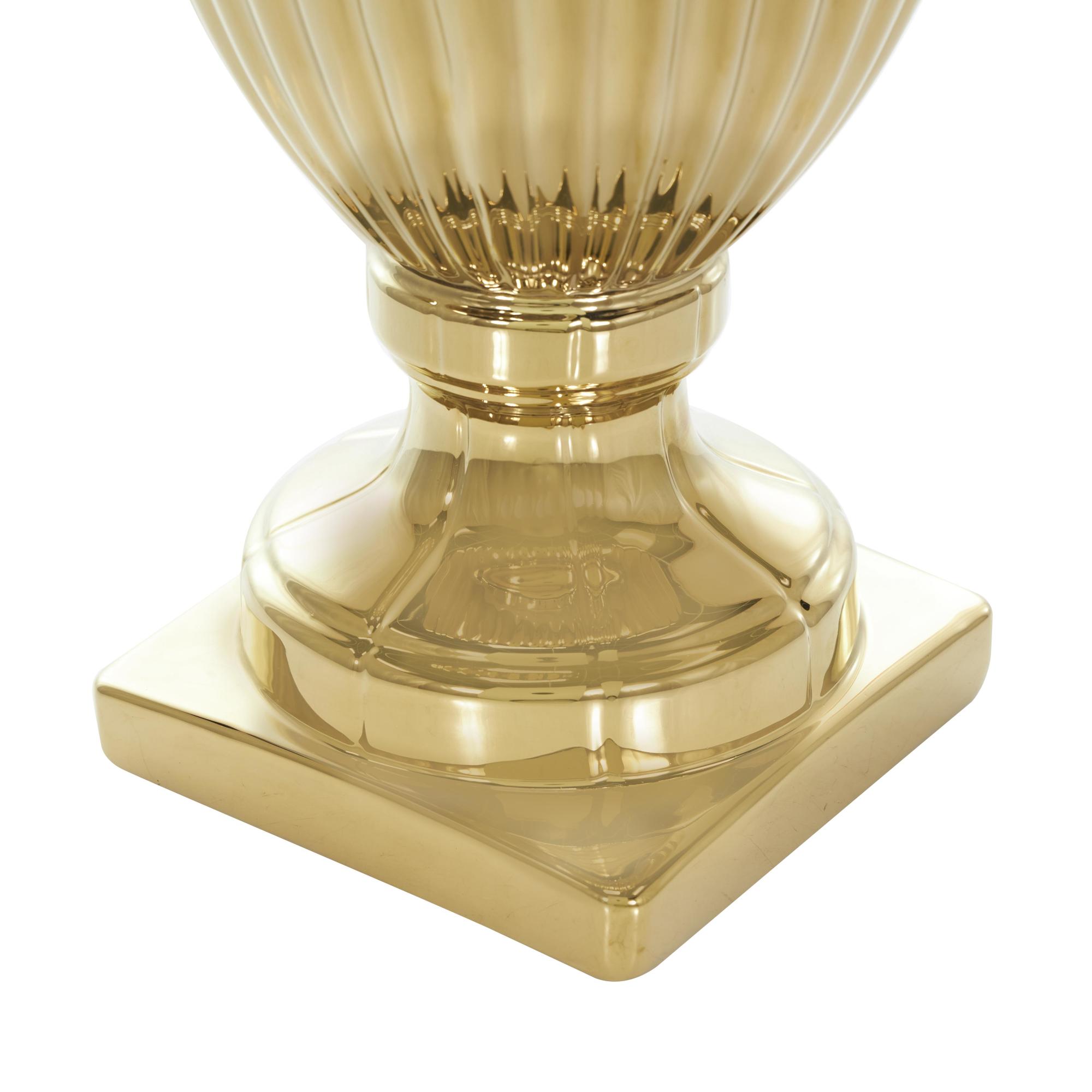 •The polished centerpiece jar showcases a unique design that includes an amphora-shaped body enhanced by vertical ribbed detailing for added texture and depth