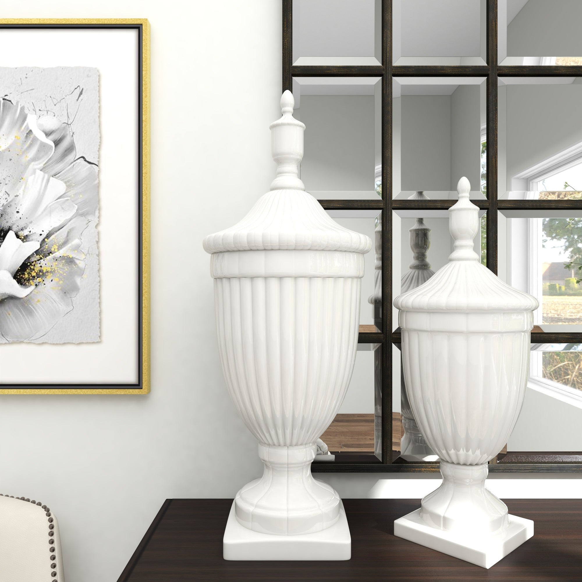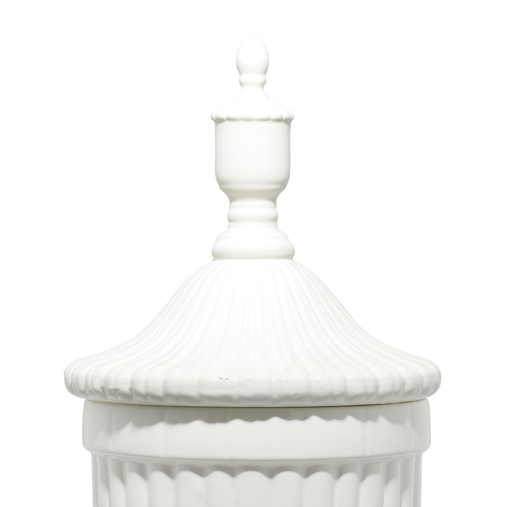 Ceramic Tall Fluted Urn Living Room Decorative Jars with Grooves and Lid