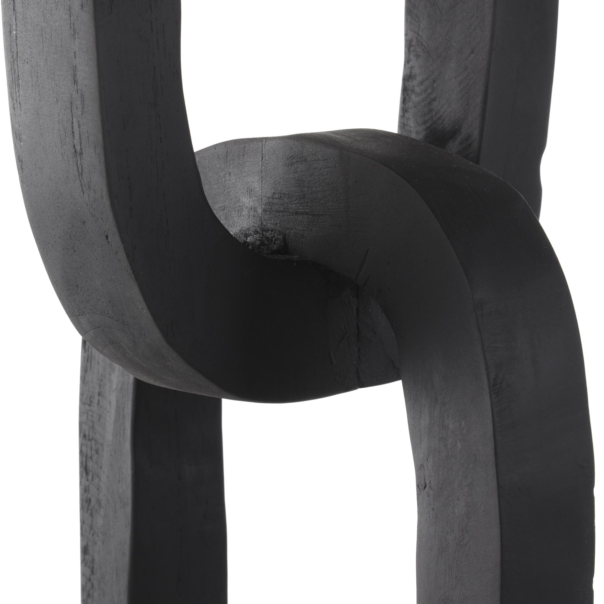 Chain Black Teak Wood Tall 3 Link Decorative Sculpture with Stand