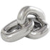 •Glossy home decor figurine boasts three interconnected chain links in rounded square shapes, creating an eye-catching focal point